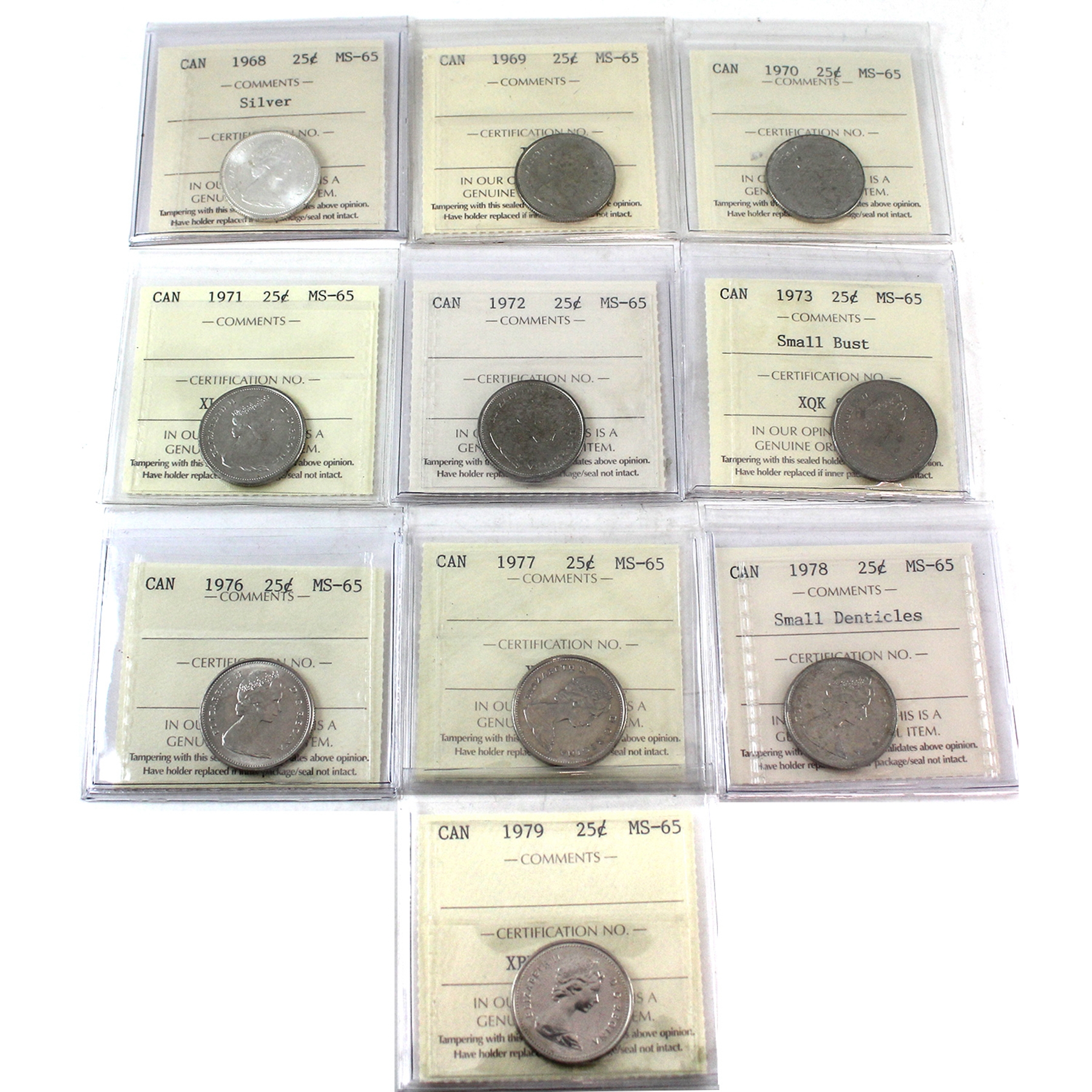 INCLUDES: 1968 Silver, 1969, 1970, 1971, 1972, 1973 Small Bust, 1976, 1977, 1978 Small Denticles & 1979. 10pcs.
