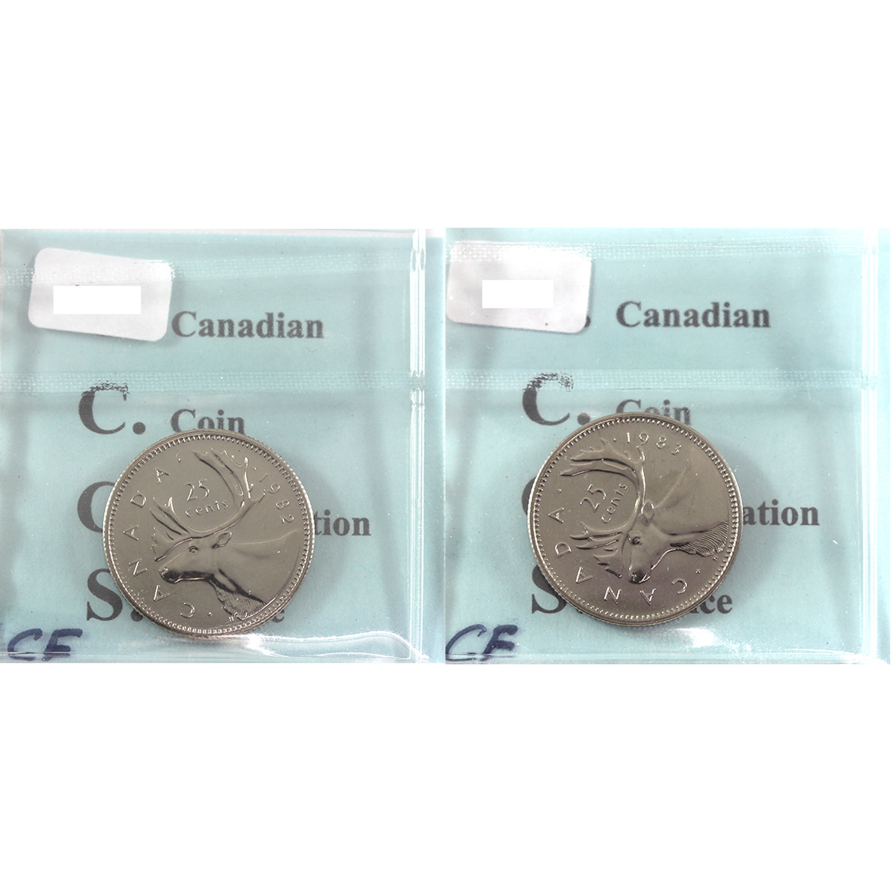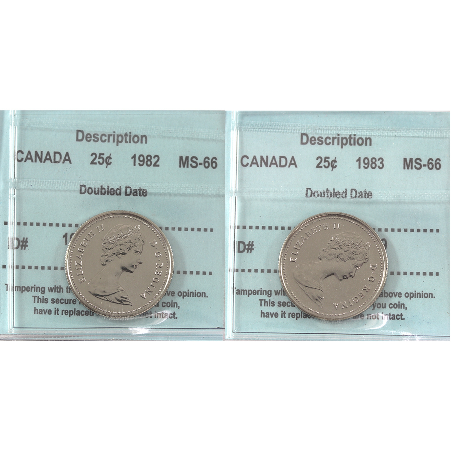 25-cent 1982 & 1983 Doubled Date CCCS MS66. 2pcs.