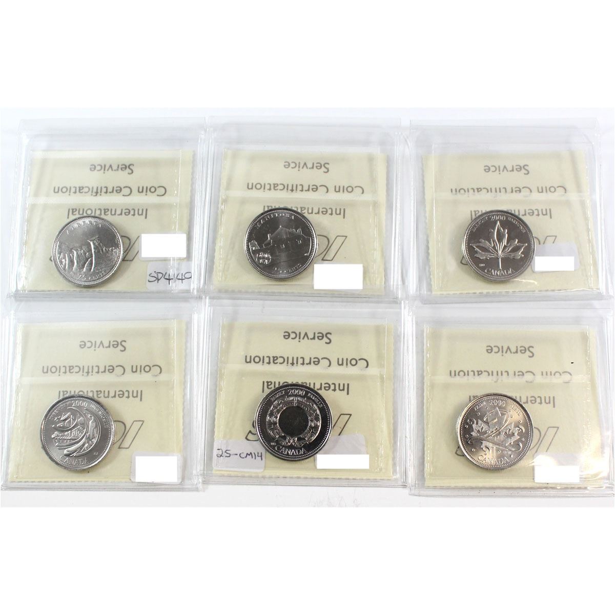 25-cent 1992 Alberta, 1992 Manitoba, 2000 Harmony, 2000 Ingenuity, 2000 Family & 2000 Pride ICCS Cer