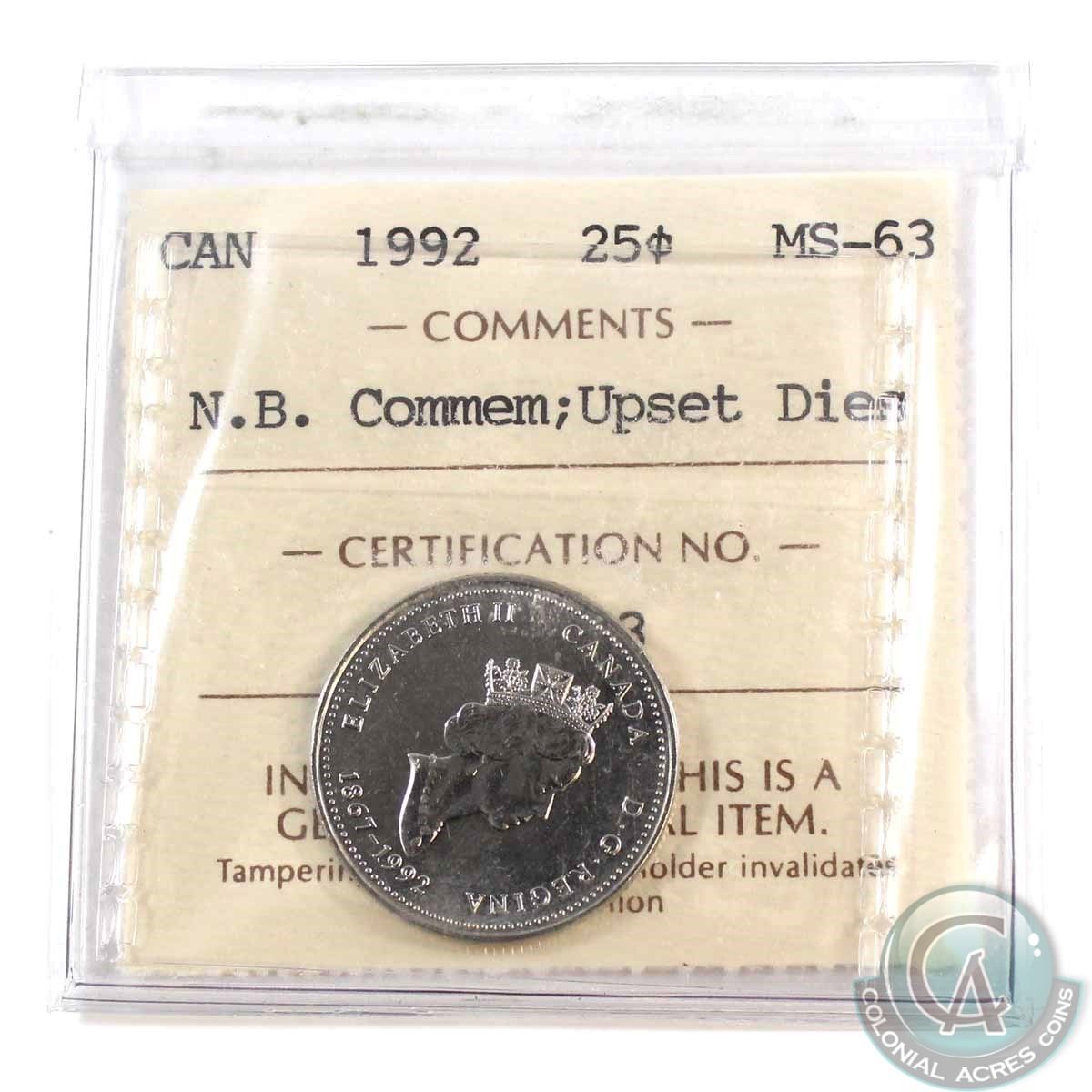 25-cent 1992 N.B Commemorative; Upset Dies ICCS Certified MS-63 (180 degree rotation)