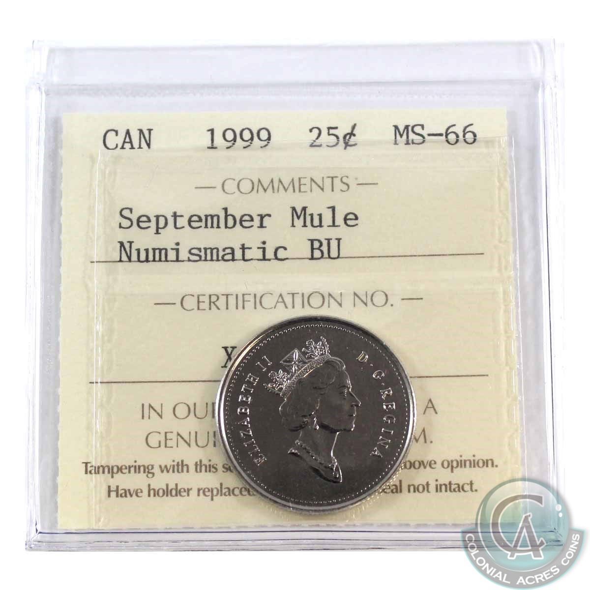 25-cent 1999 September Mule ICCS Certified MS-66; NBU. Missing "25 Cents"