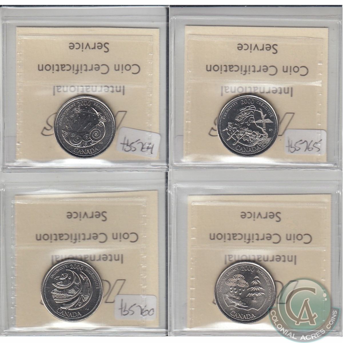 25-cent 2000 Achievement, Creativity, Ingenuity & Natural Legacy ICCS Certified MS-65. 4pcs.