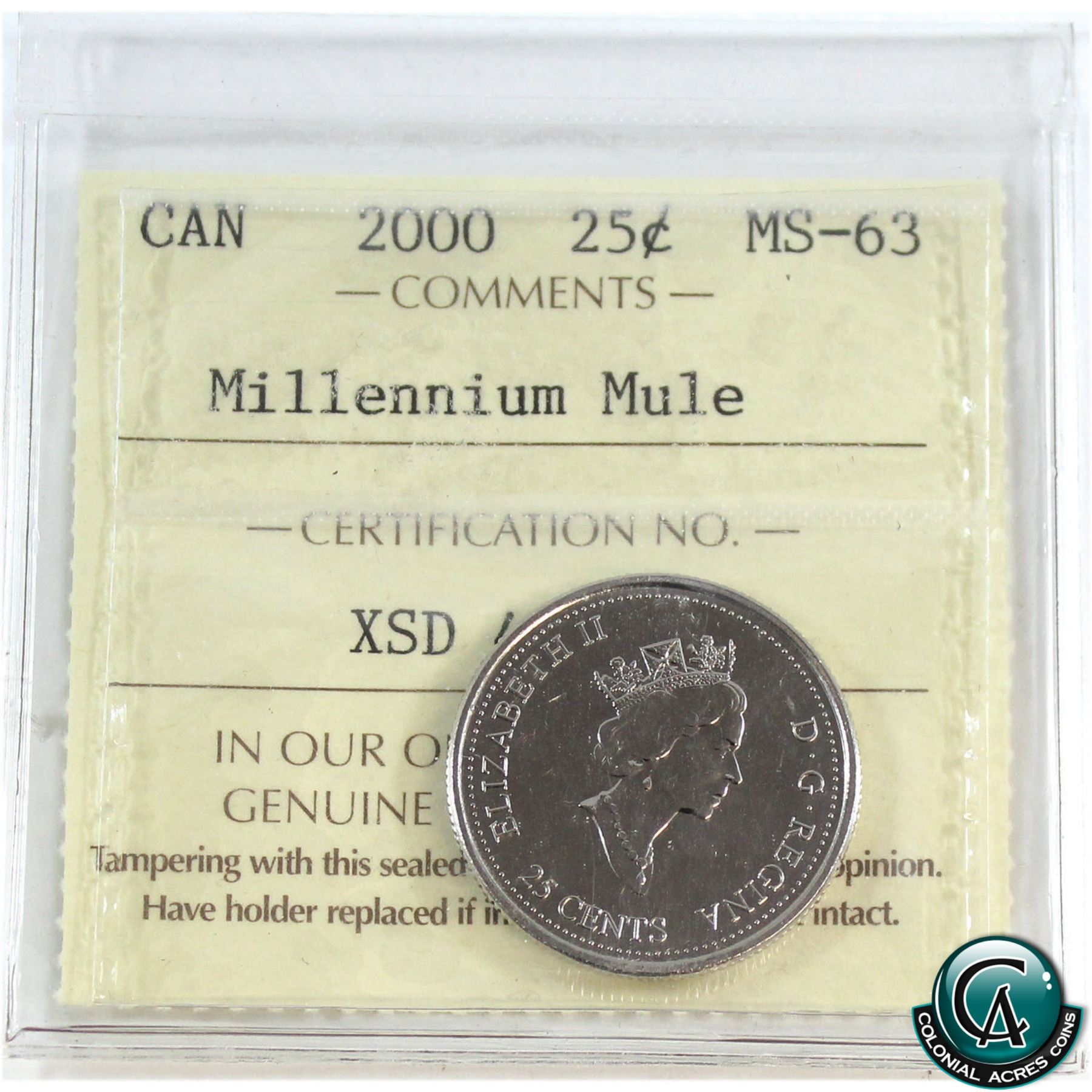25-cent 2000 Millennium Mule ICCS Certified MS-63.