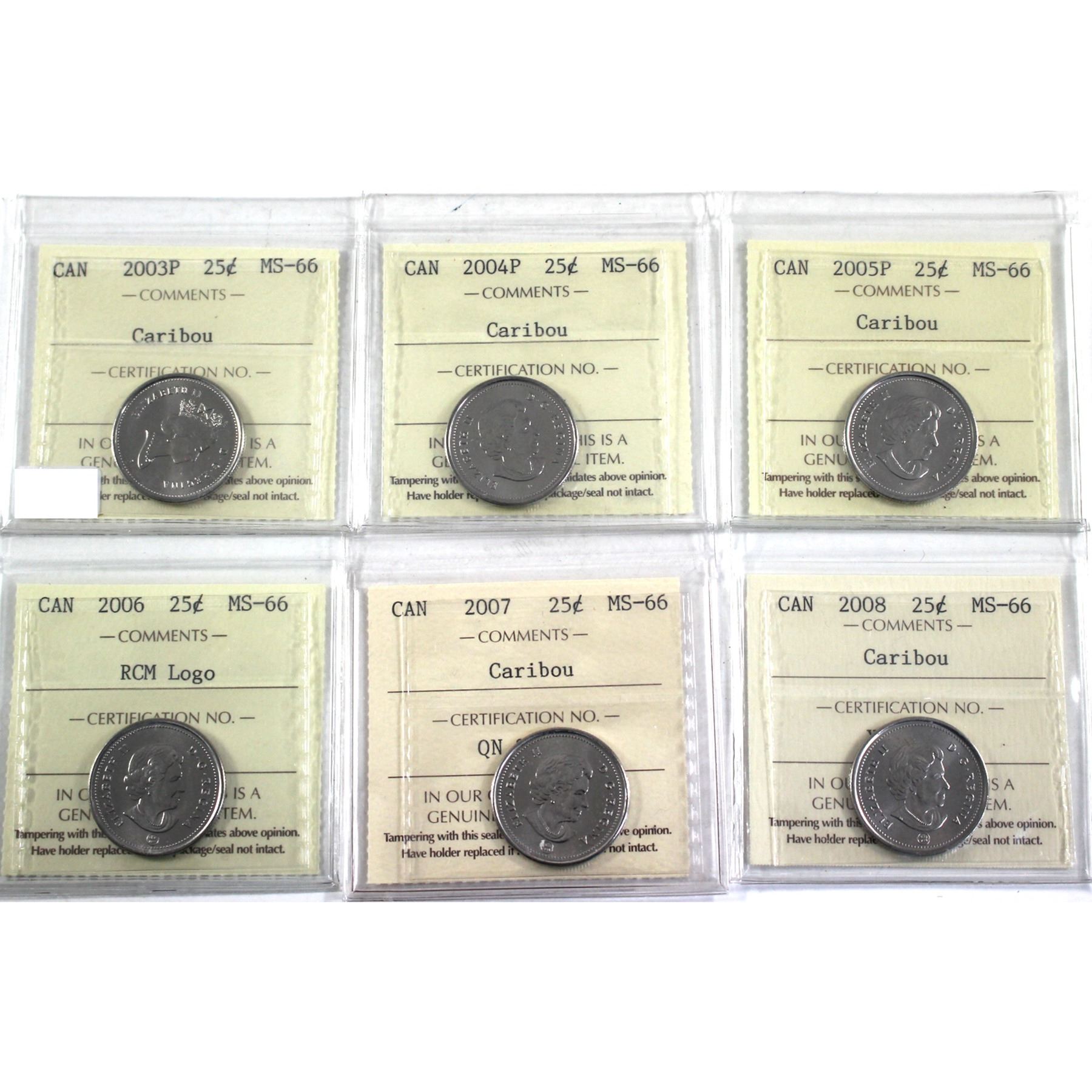 25-cent 2003P OE, 2004P,2005P, 2006 RCM Logo, 2007 & 2008 ICCS Certified MS-66. 6pcs