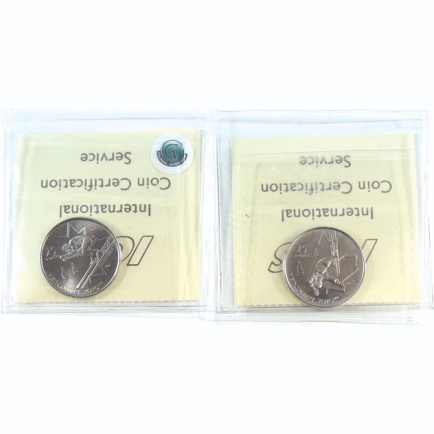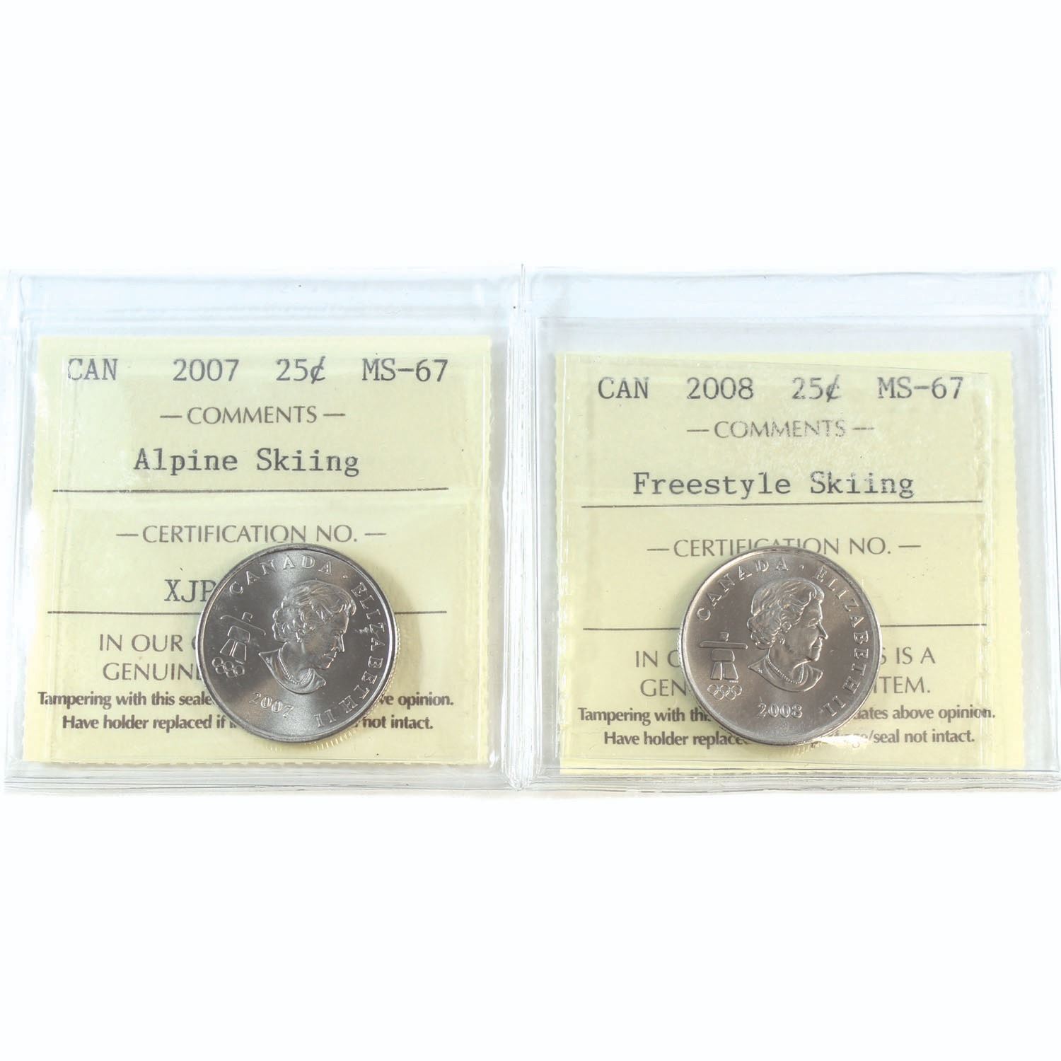 25-cent 2007 Alpine Skiing & 2008 Freestyle Skiing ICCS Certified MS-67. 2pcs.