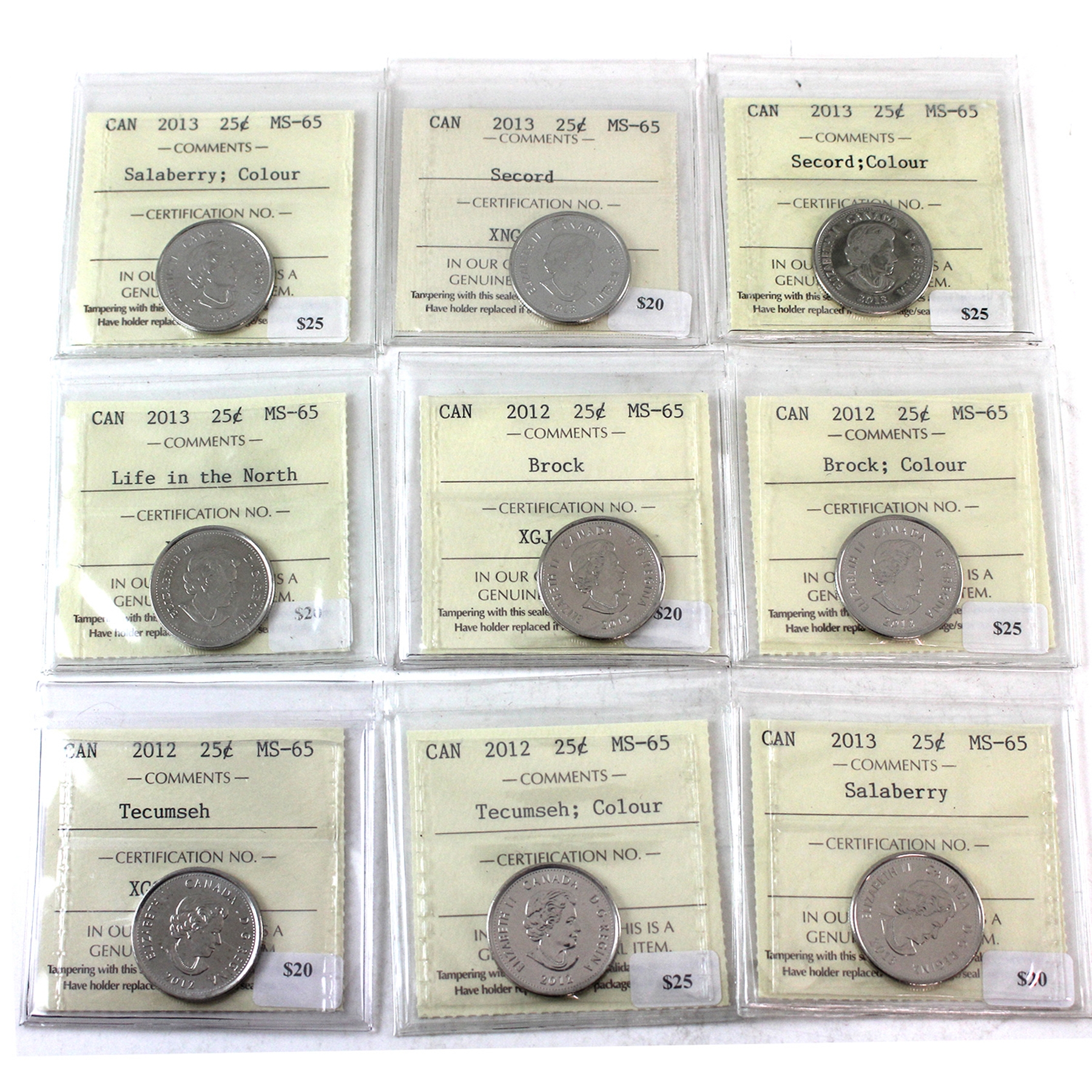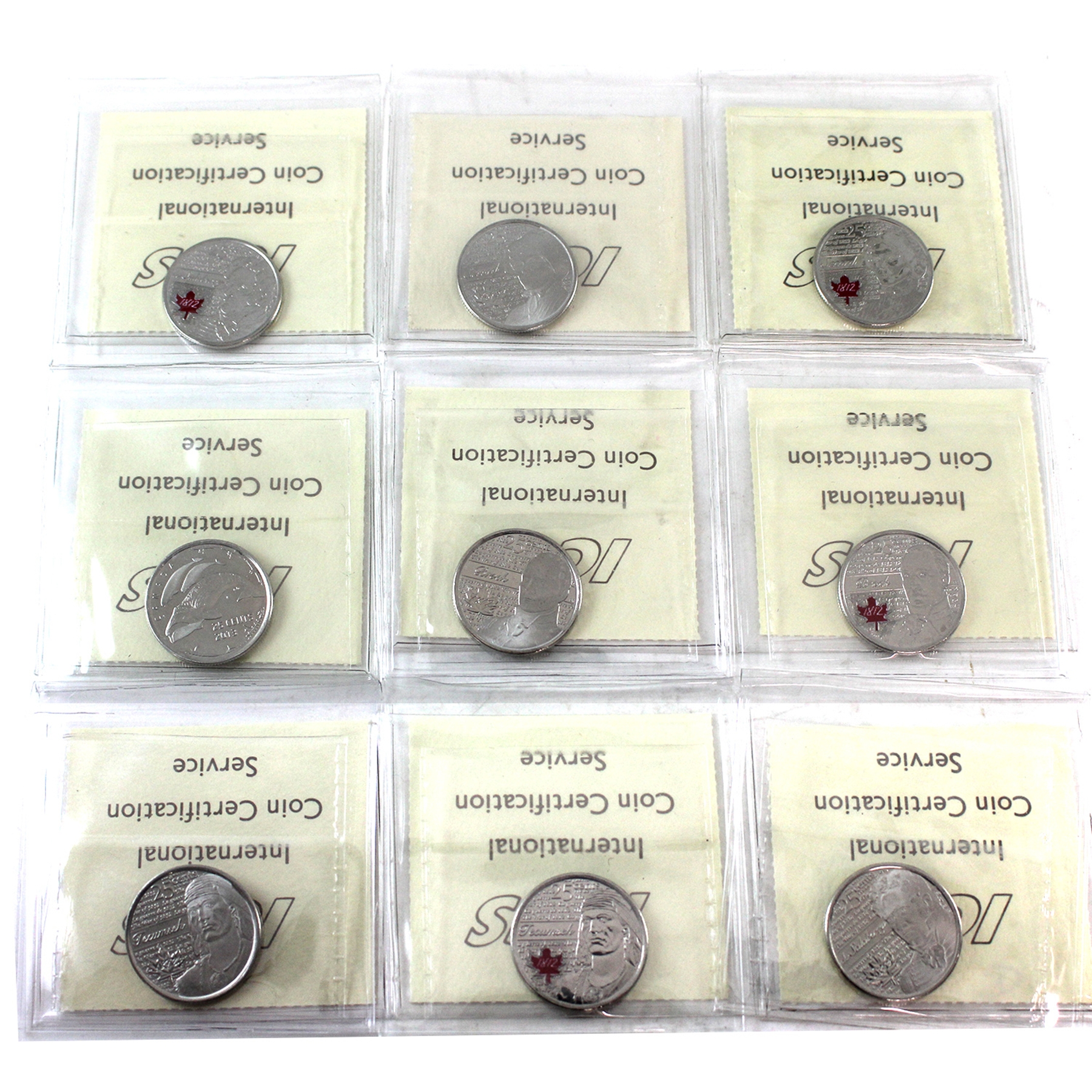 INCLUDES: 2012 Brock, 2012 Brock; Colour, 2012 Tecumseh, 2012 Tecumseh; Colour, 2013 Salaberry, 2013 Salaberry; Colour, 2013 Secord, 2013 Secord; Colour & 2013 Life in the North. 9pcs.