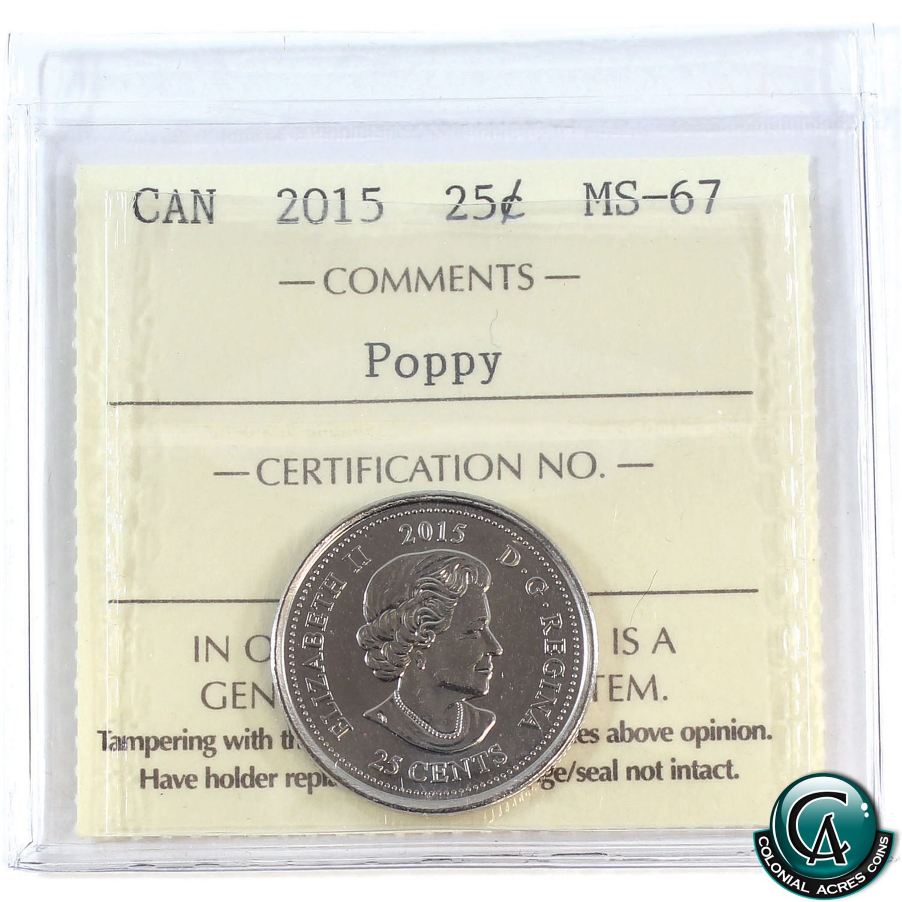 25-cent 2015 Poppy ICCS Certified MS-67!