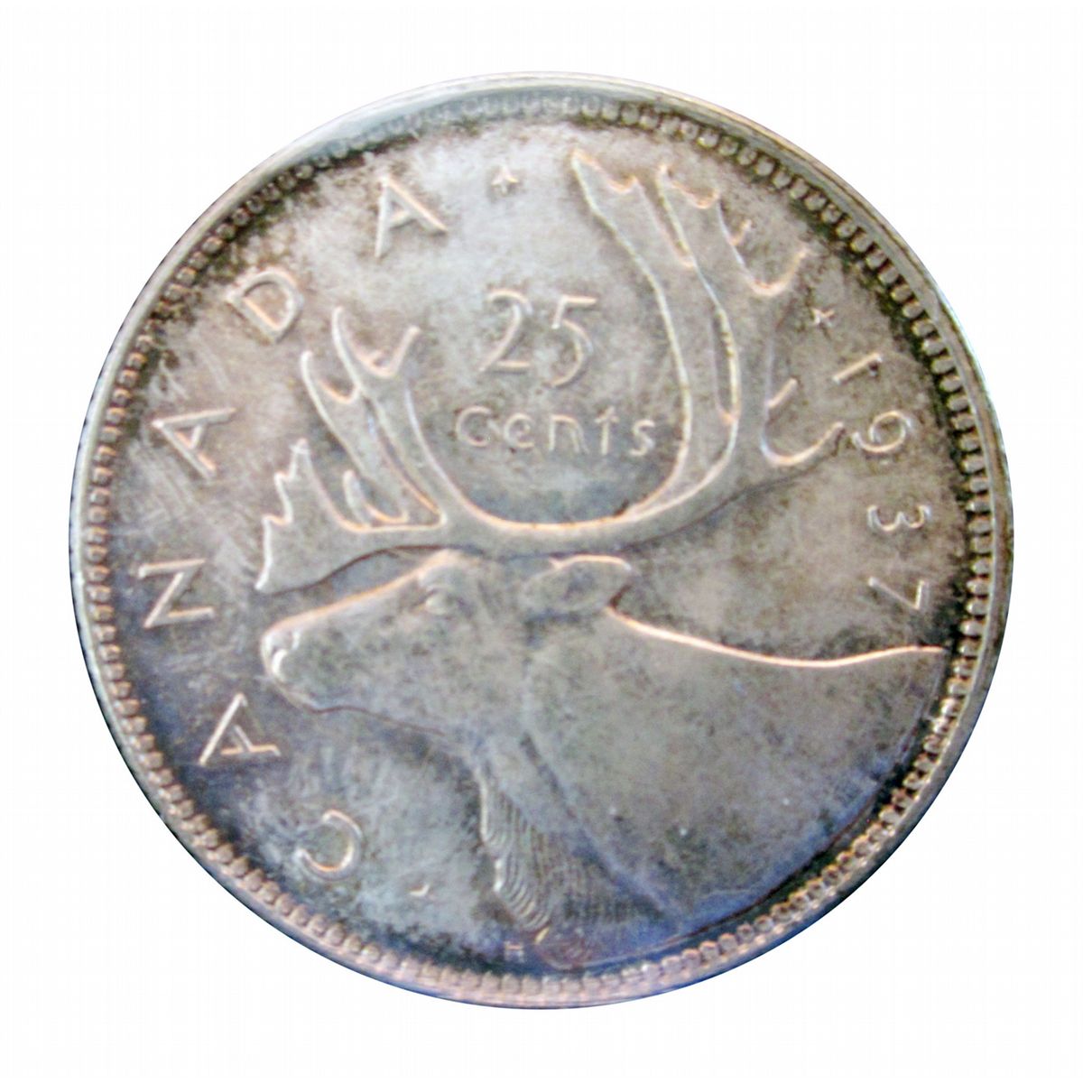 25 cents 1937 ICCS MS-65. Very light rusty toning and great lustre.