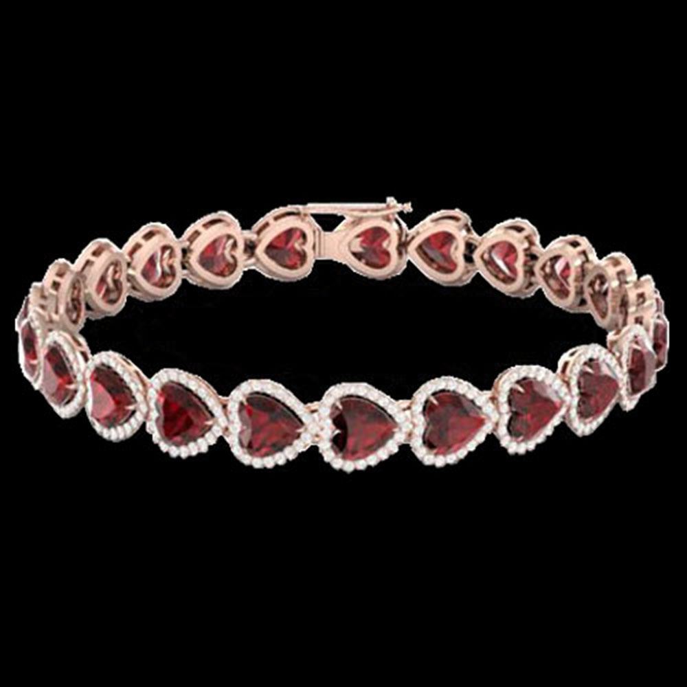 REF-415Y5X - SKU: 22616 ---- 25 ctw Garnet & Micro Pave VS/SI Diamond Bracelet Heart 14k Rose Gold