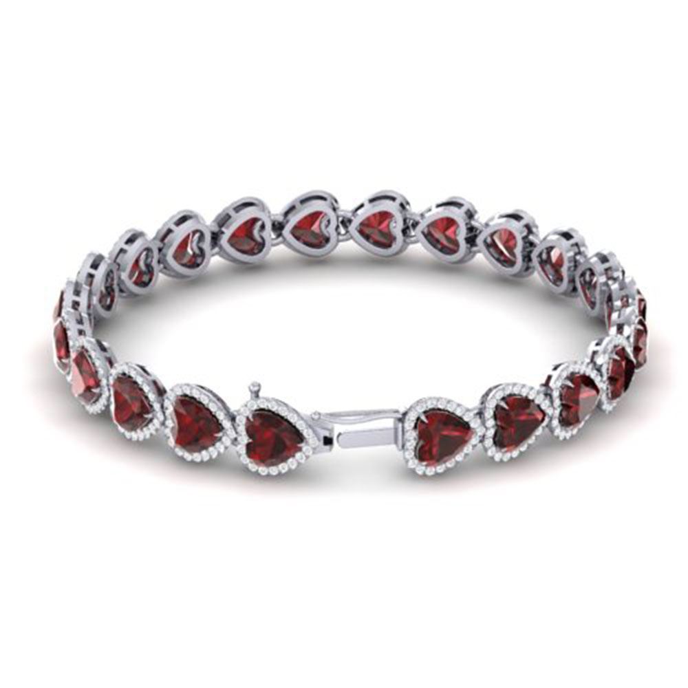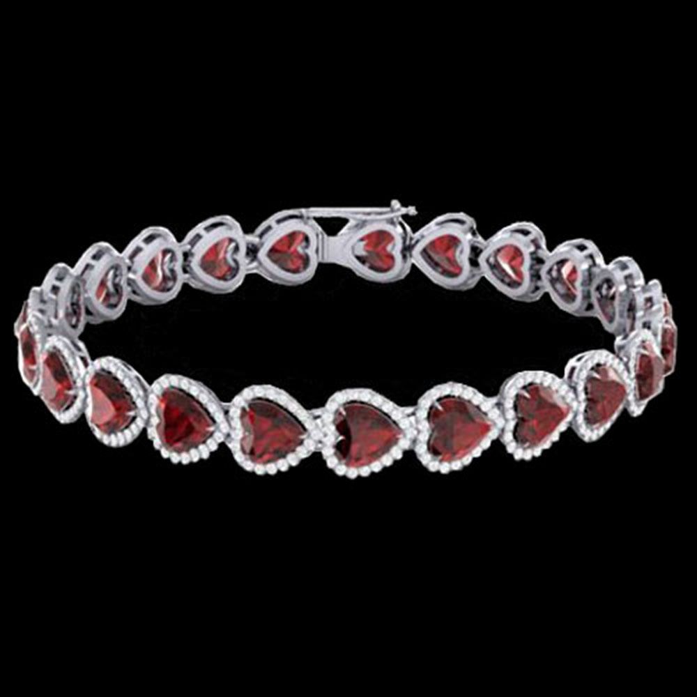 REF-415R5K - SKU: 22615 ---- 25 ctw Garnet & Micro Pave VS/SI Diamond Bracelet Heart 14k White Gold