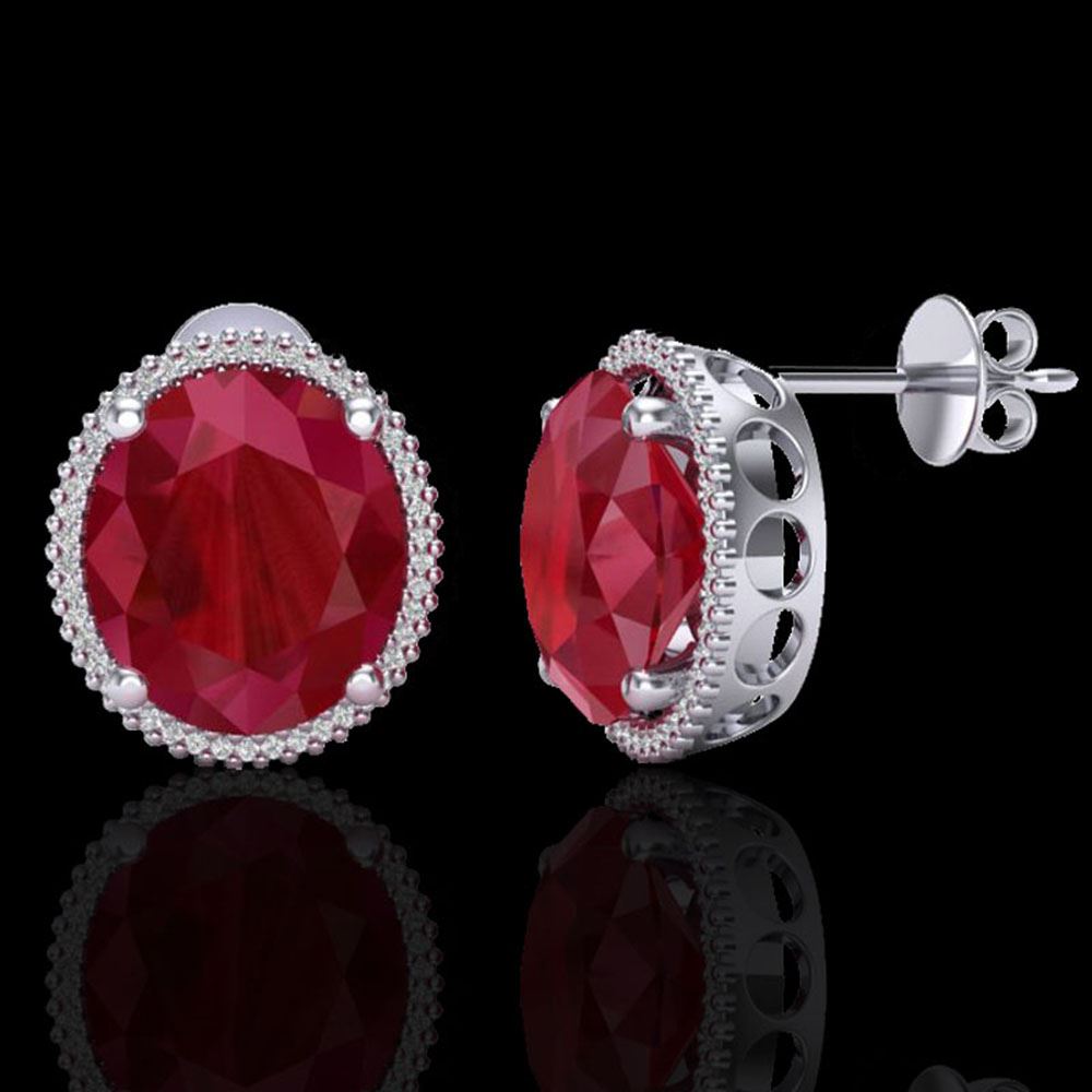 REF-254Y5X - SKU: 20275 ---- 25 ctw Ruby & Micro Pave VS/SI Diamond Earrings 18k White Gold