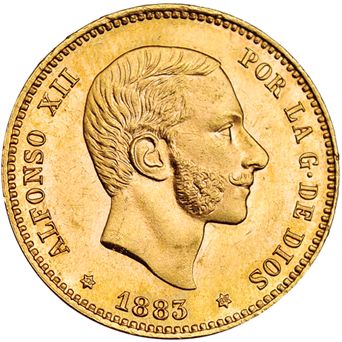 25 pesetas. 1883 *18-83. Madrid. MSM. VII-112. EBC+. Escasa.