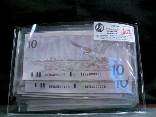 25 x matched sets of the 1989 and 2001 $10 notes. Each pair has the same prefix and serial number. 50 notes all together. All Gem uncirculated
