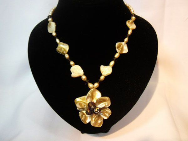 250 CTW MOTHER OF PEARL FLOWER PENDANT IVORY AND PEACH  **|**|** 250 CTW MOTHER OF PEARL FLOWER PENDANT IVORY AND PEACH PEARL WITH CRYSTALS NECKLACE; 18 INCHES; PHILIPPINE PEARLS ; MSRP: $500