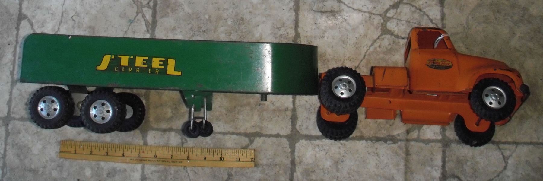 For you : 2 marvelous toys, here are an interesting Tonka Mound Minn. USA made orange old truck toy and Steel Carrier solid thick metal, for fun ;