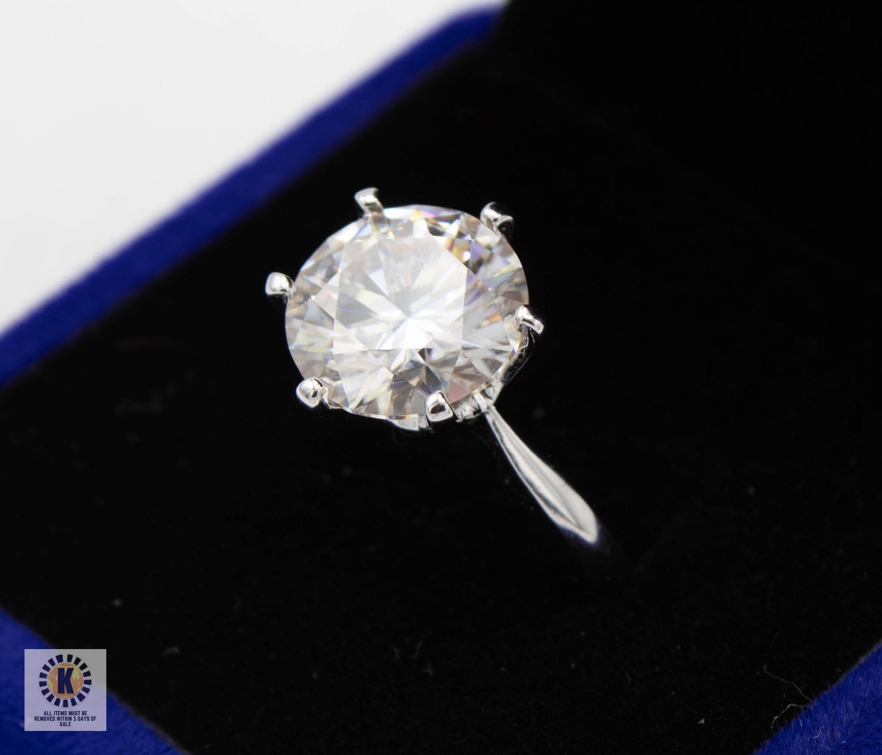 MOISSANITE STONE VVS D COLOR SET IN 6 CLAW HEAD SET IN 925 SILVER RING SIZE 7 RETAIL VALUE $1,375.00 **ALL ITEMS MUST BE REMOVED BY 5PM SATURDAY, APRIL 26TH 2025. ALL REMAINING ITEMS WILL BE SUBJECT TO A $6.00 PER DAY STORAGE CHARGE. ANY ITEMS REMAINING AFTER MONDAY, MAY 12TH 2025 WILL BE CONSIDERED FORFEITED. NO REFUNDS WILL BE ISSUED FOR FORFEITED ITEMS. TO SCHEDULE A PICK UP APPOINTMENT CLICK HERE