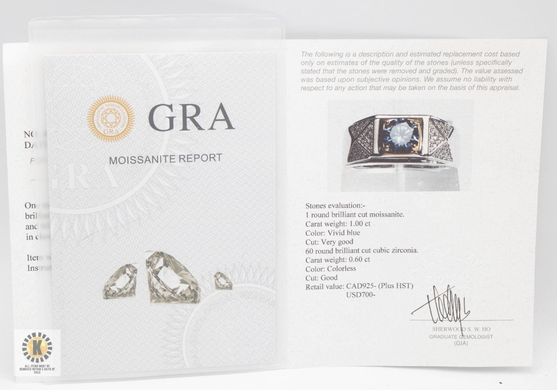 MOISSANITE STONE VVS VIVID BLUE COLOR SET IN 4 CLAWS HEAD WITH 60 ROUND BRILLIANT CUT CUBIC ZIRCONIA SET IN SHANKS SET IN 925 SILVER RING SIZE 10 RETAIL VALUE $925.00 **ALL ITEMS MUST BE REMOVED BY 5PM SATURDAY, APRIL 26TH 2025. ALL REMAINING ITEMS WILL BE SUBJECT TO A $6.00 PER DAY STORAGE CHARGE. ANY ITEMS REMAINING AFTER MONDAY, MAY 12TH 2025 WILL BE CONSIDERED FORFEITED. NO REFUNDS WILL BE ISSUED FOR FORFEITED ITEMS. TO SCHEDULE A PICK UP APPOINTMENT CLICK HERE