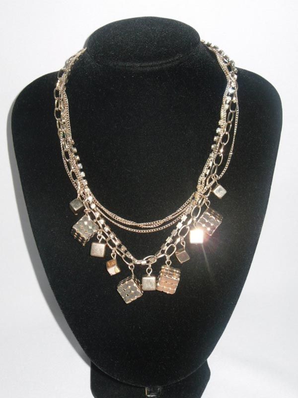 250CTW MULTI-CHAINED CUBES CZ BRASS NECKLACE;18INCH **|**|** 250CTW MULTI-CHAINED CUBES CZ BRASS NECKLACE;18INCH ; MSRP: $180