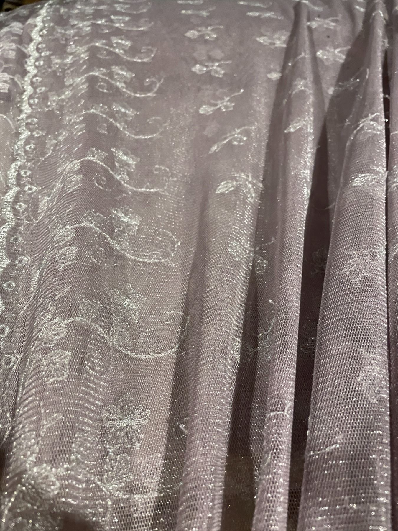 High Quality Japanese Lace fabric with diamanté net and scalloped border. Heavy embroidered lace border