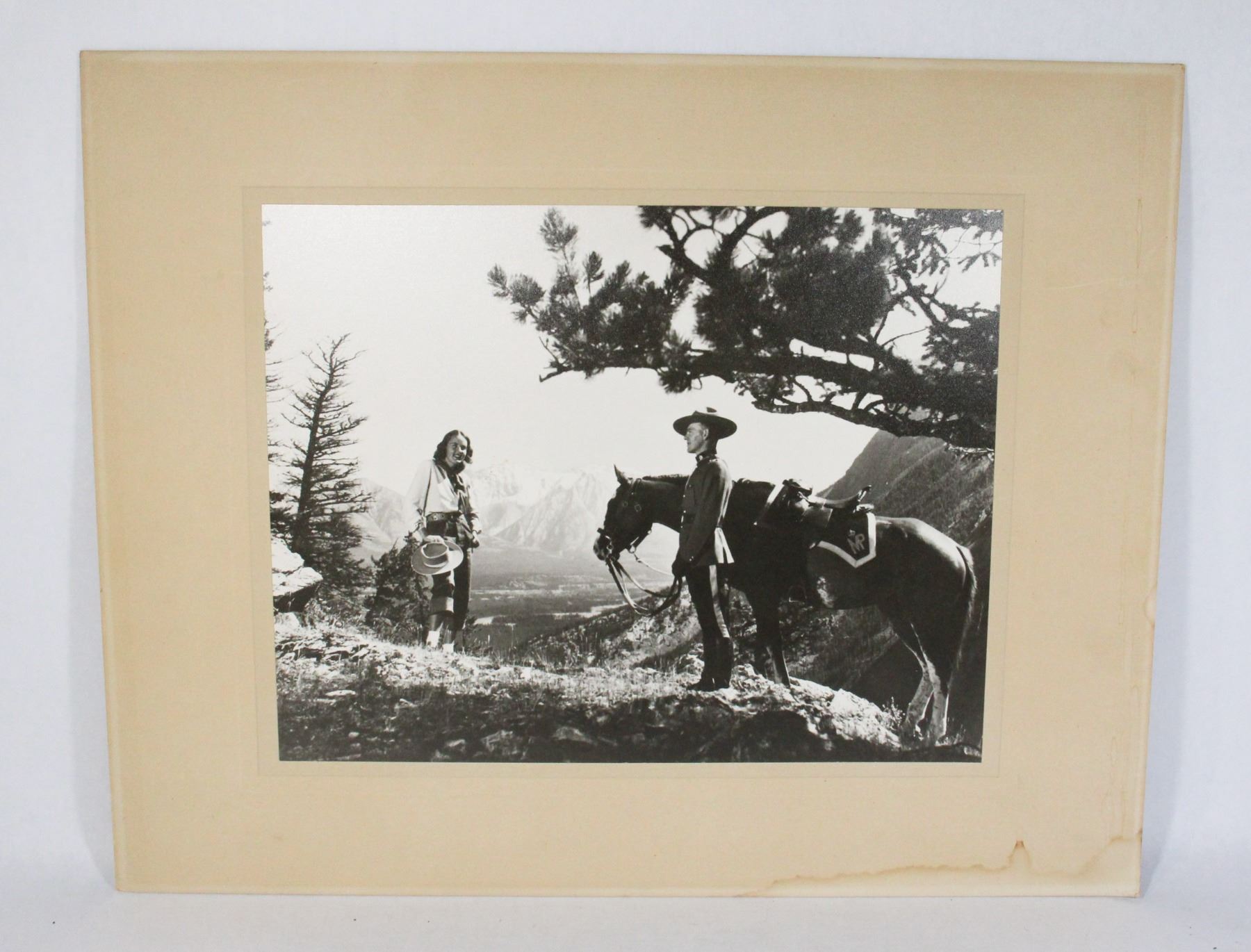 21 INCHES LONG BY 16 INCHES TALL VINTAGE PHOTOGRAPH BLACK AND WHITE RCMP ROYAL CANADIAN MOUNTED POLICE APPEARS MID 20TH CENTURY, LOWER WEAR TO PHOTOGRAPH