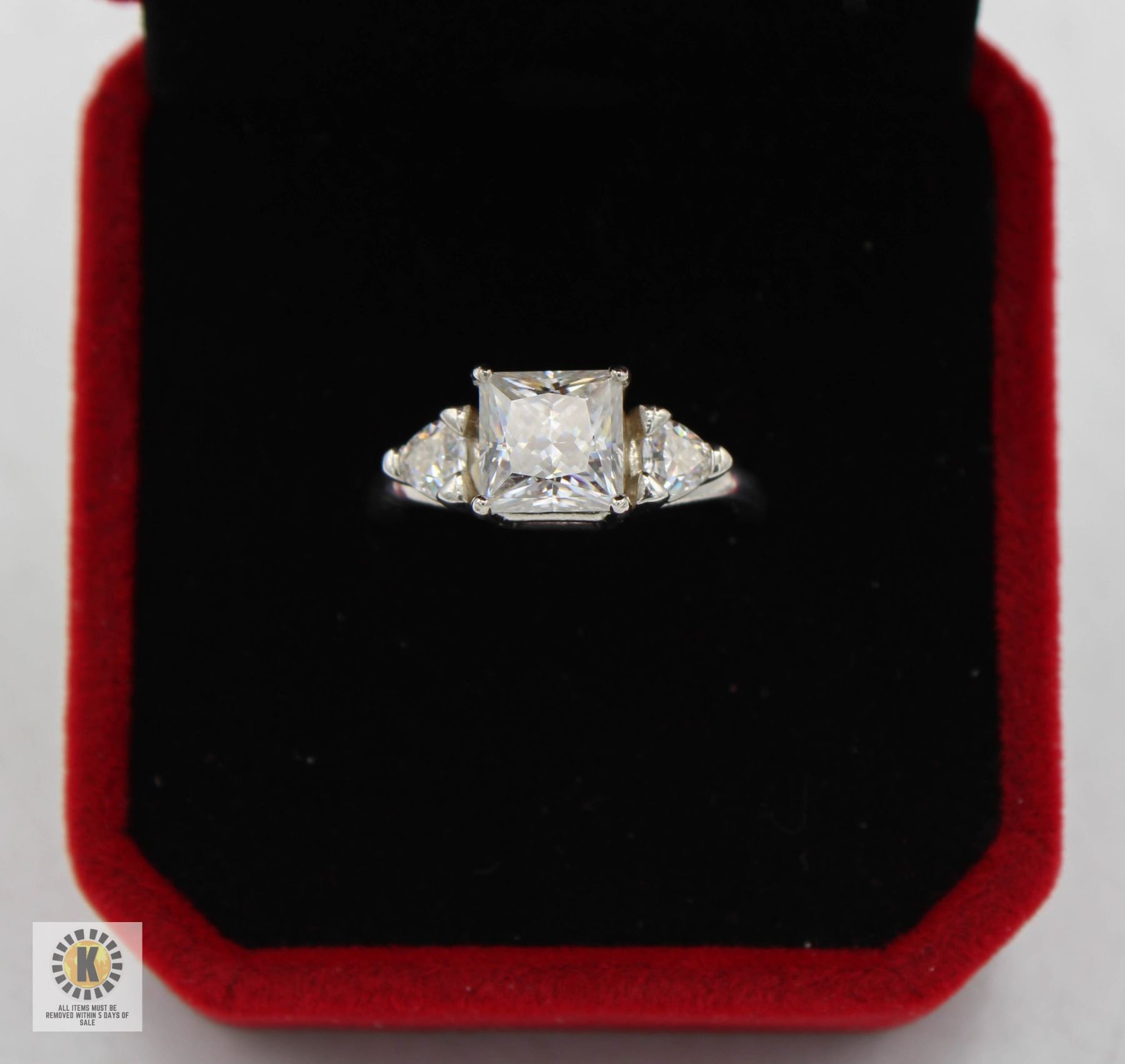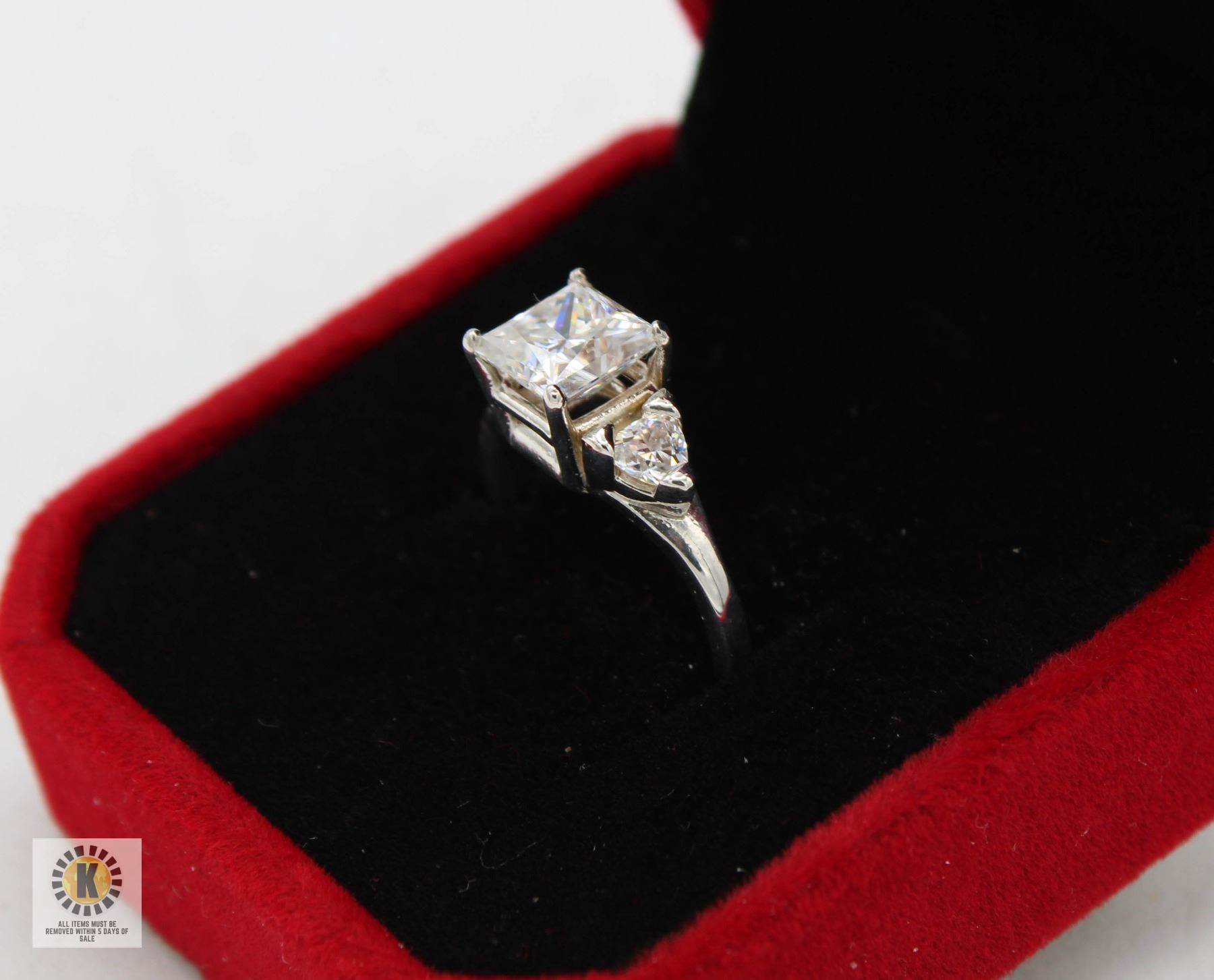 CUT MOISSANITE STONE VVS D COLOR SET WITH 2 TRIANGULAR CUT MOISSANITE STONE VVS D SET IN 925 SILVER RING SIZE 7 **ALL ITEMS MUST BE REMOVED BY 5PM SATURDAY, APRIL 3RD 2025. ALL REMAINING ITEMS WILL BE SUBJECT TO A $6.00 PER DAY STORAGE CHARGE. ANY ITEMS REMAINING AFTER MONDAY, MAY 19TH 2025 WILL BE CONSIDERED FORFEITED. NO REFUNDS WILL BE ISSUED FOR FORFEITED ITEMS. TO SCHEDULE A PICK UP APPOINTMENT CLICK HERE