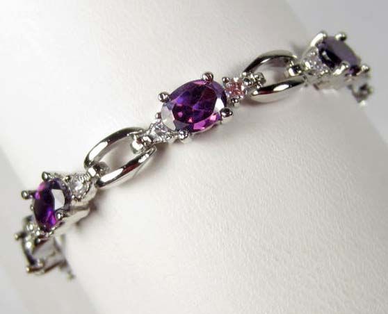 2522 - WHITE GOLD PLATED AMETHYST BRACELET