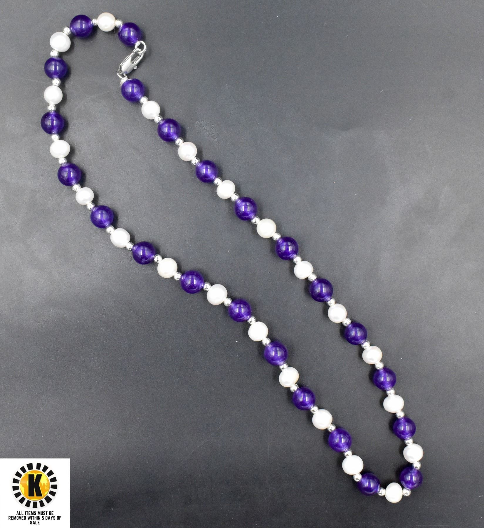 #253-NATURAL FRESH WATER PEARL,AMETHYST NECKLACE