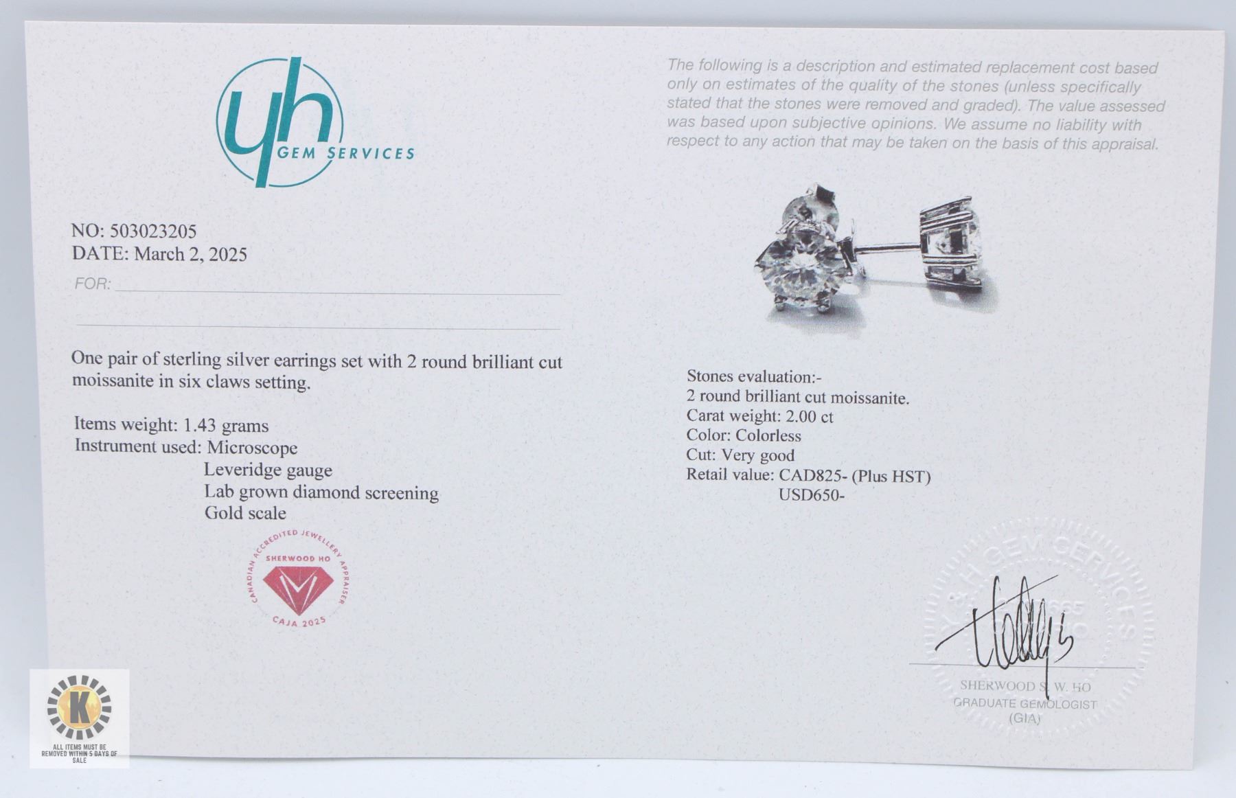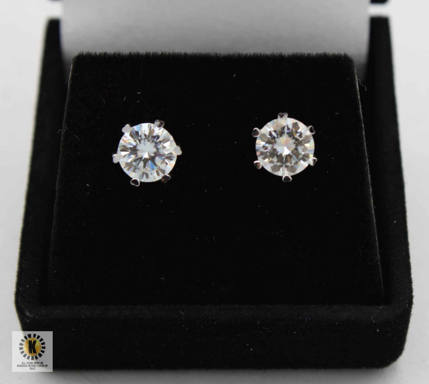 CUT MOISSANITE STONES VVS D COLOR SET IN 6 CLAW BASKET HEAD SET IN 925 SILVER EARRINGS RETAIL VALUE $825.00 **ALL ITEMS MUST BE REMOVED BY 5PM SATURDAY, APRIL 3RD 2025. ALL REMAINING ITEMS WILL BE SUBJECT TO A $6.00 PER DAY STORAGE CHARGE. ANY ITEMS REMAINING AFTER MONDAY, MAY 19TH 2025 WILL BE CONSIDERED FORFEITED. NO REFUNDS WILL BE ISSUED FOR FORFEITED ITEMS. TO SCHEDULE A PICK UP APPOINTMENT CLICK HERE