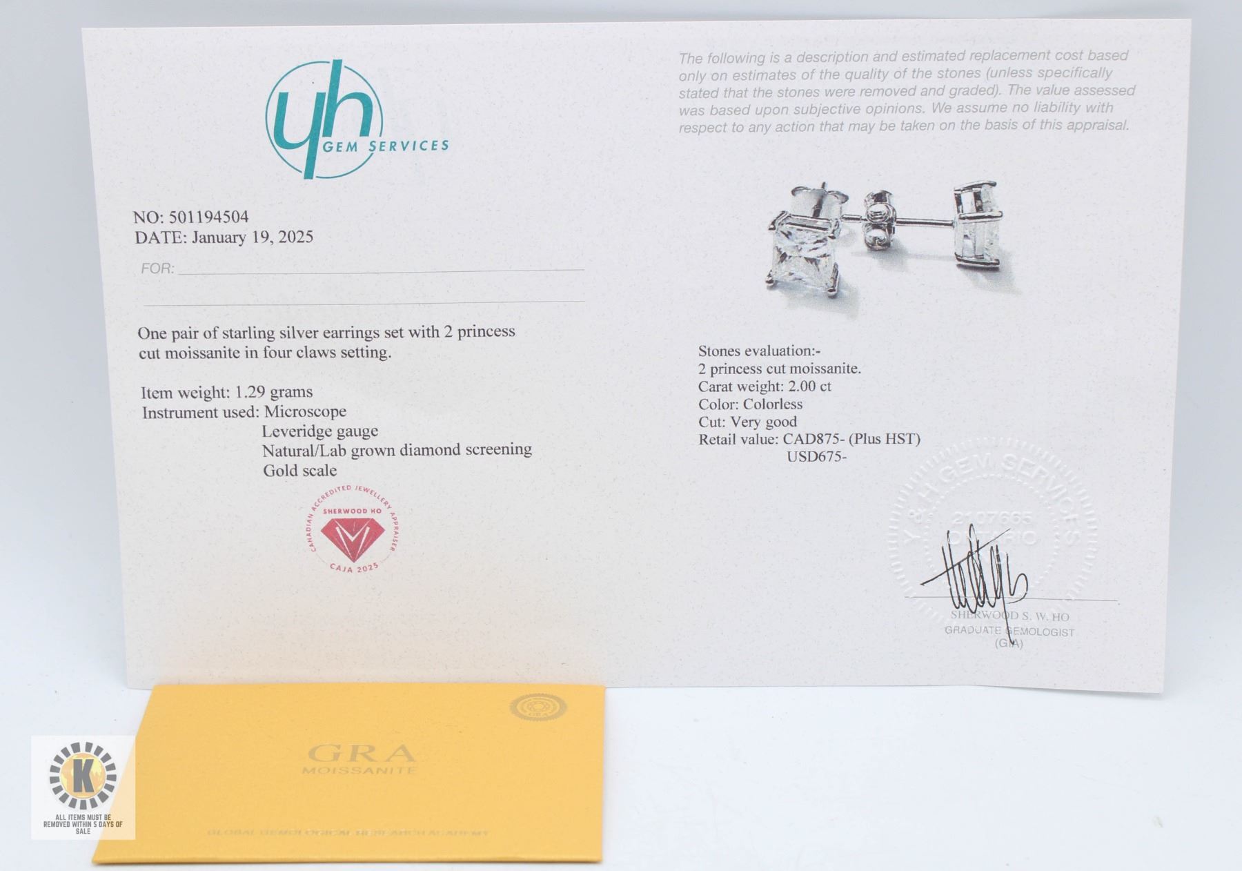 MOISSANITE STONES VVS D COLOR SET IN 4 CLAW BASKET HEAD SET IN 925 SILVER EARRINGS RETAIL VALUE $875.00 **ALL ITEMS MUST BE REMOVED BY 5PM SATURDAY, APRIL 3RD 2025. ALL REMAINING ITEMS WILL BE SUBJECT TO A $6.00 PER DAY STORAGE CHARGE. ANY ITEMS REMAINING AFTER MONDAY, MAY 19TH 2025 WILL BE CONSIDERED FORFEITED. NO REFUNDS WILL BE ISSUED FOR FORFEITED ITEMS. TO SCHEDULE A PICK UP APPOINTMENT CLICK HERE