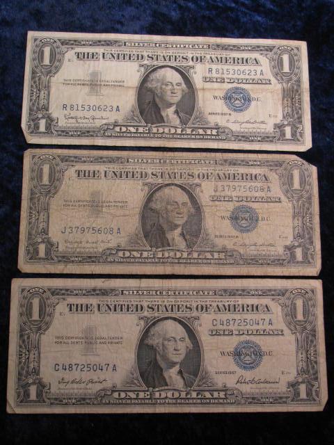 254. Set of 3 Series 1957 $1 Silver Certificates. Circ.