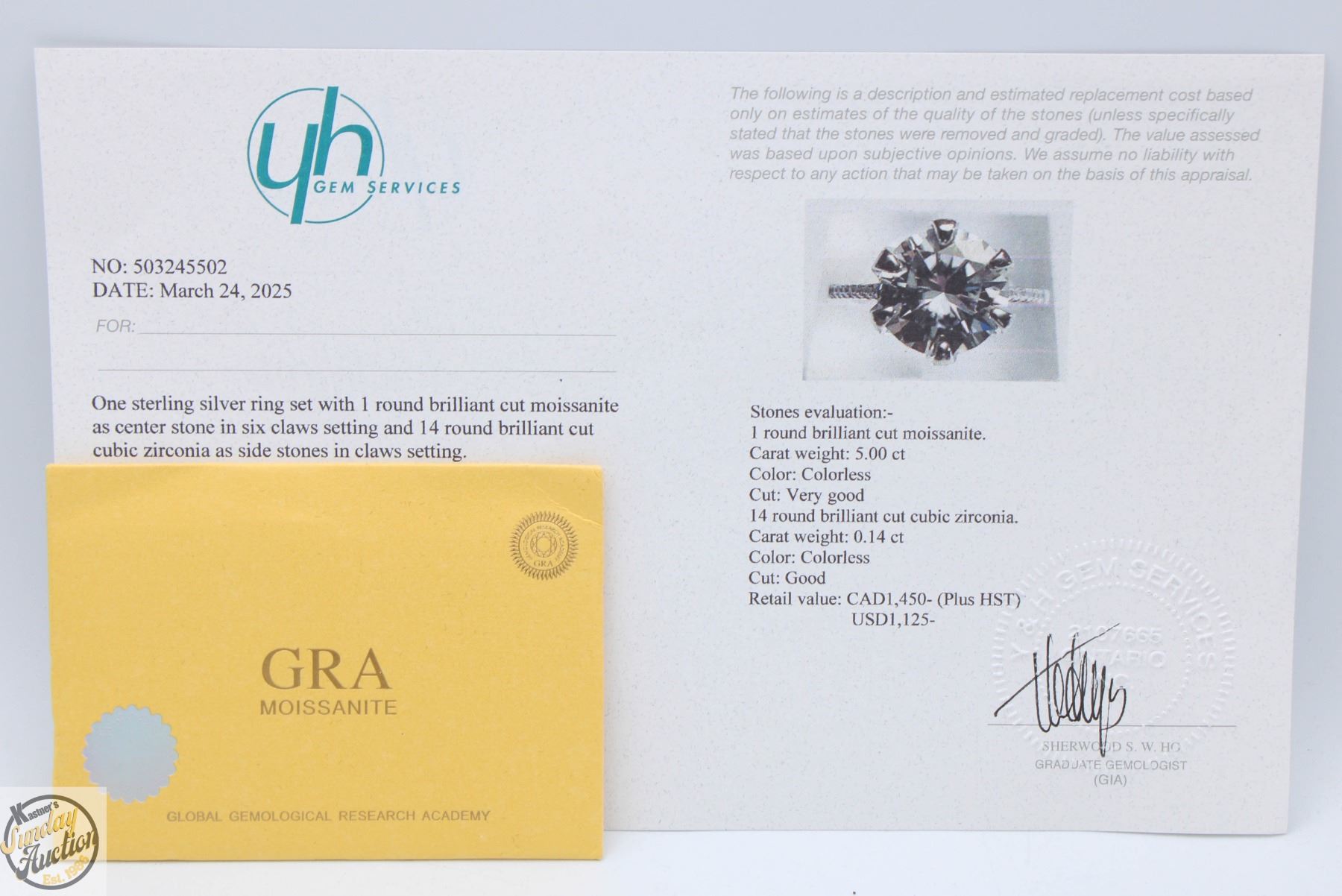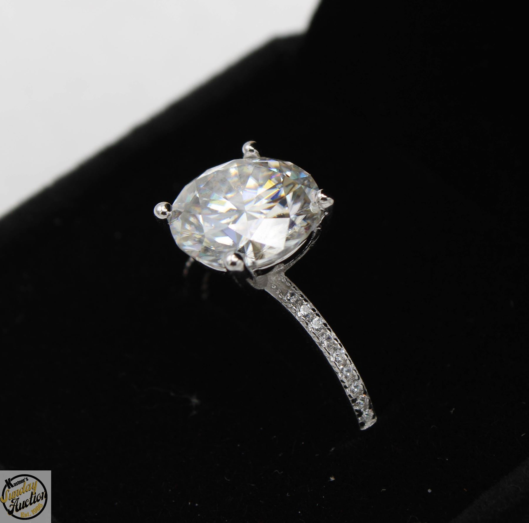 CUT MOISSANITE STONE VVS D COLOR SET IN CENTER WITH 14 ROUND BRILLIANT CUT CUBIC ZIRCONIA AND SET IN 925 SILVER RING SIZE 7.25 RETAIL VALUE $1,450.00 **ALL ITEMS MUST BE REMOVED BY 5PM SATURDAY, MAY 10TH 2025. ALL REMAINING ITEMS WILL BE SUBJECT TO A $6.00 PER DAY STORAGE CHARGE. ANY ITEMS REMAINING AFTER MONDAY, MAY 26TH 2025 WILL BE CONSIDERED FORFEITED. NO REFUNDS WILL BE ISSUED FOR FORFEITED ITEMS. TO SCHEDULE A PICK UP APPOINTMENT CLICK HERE