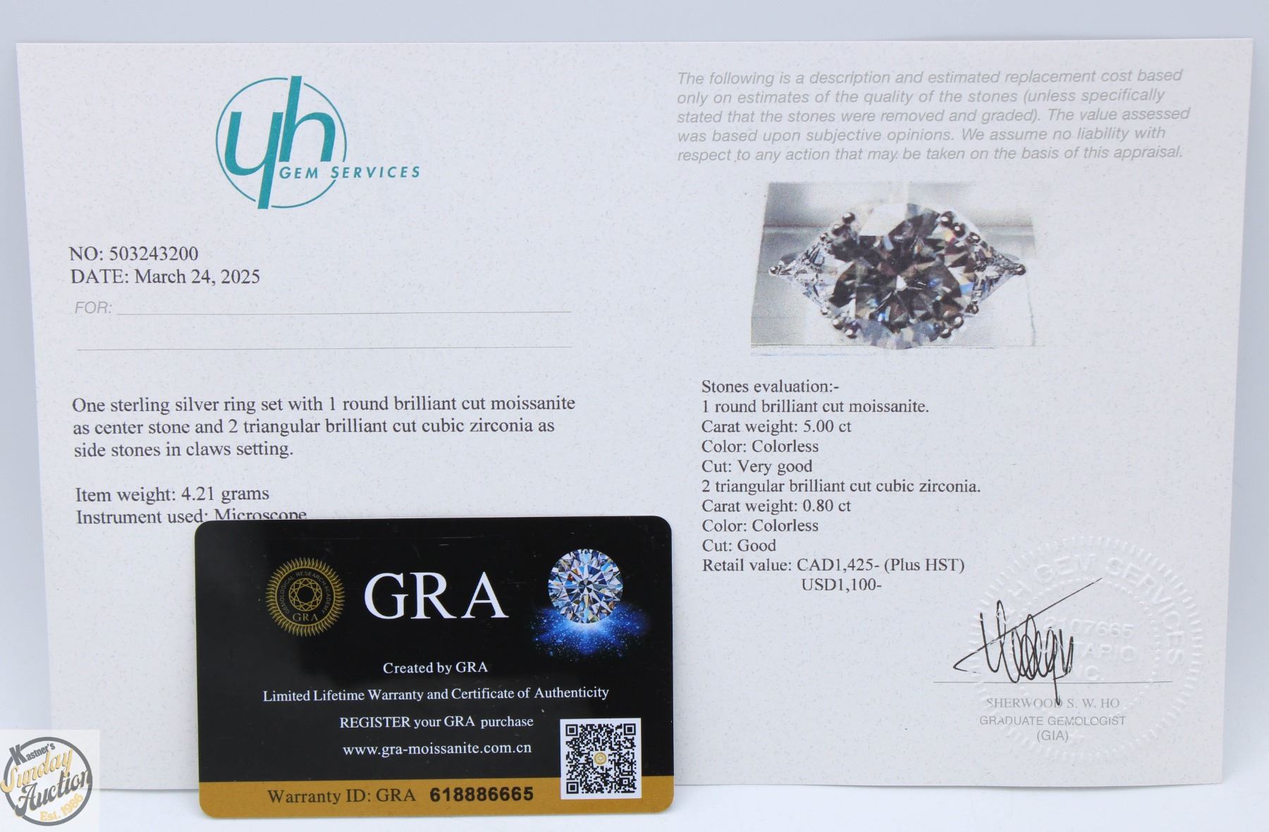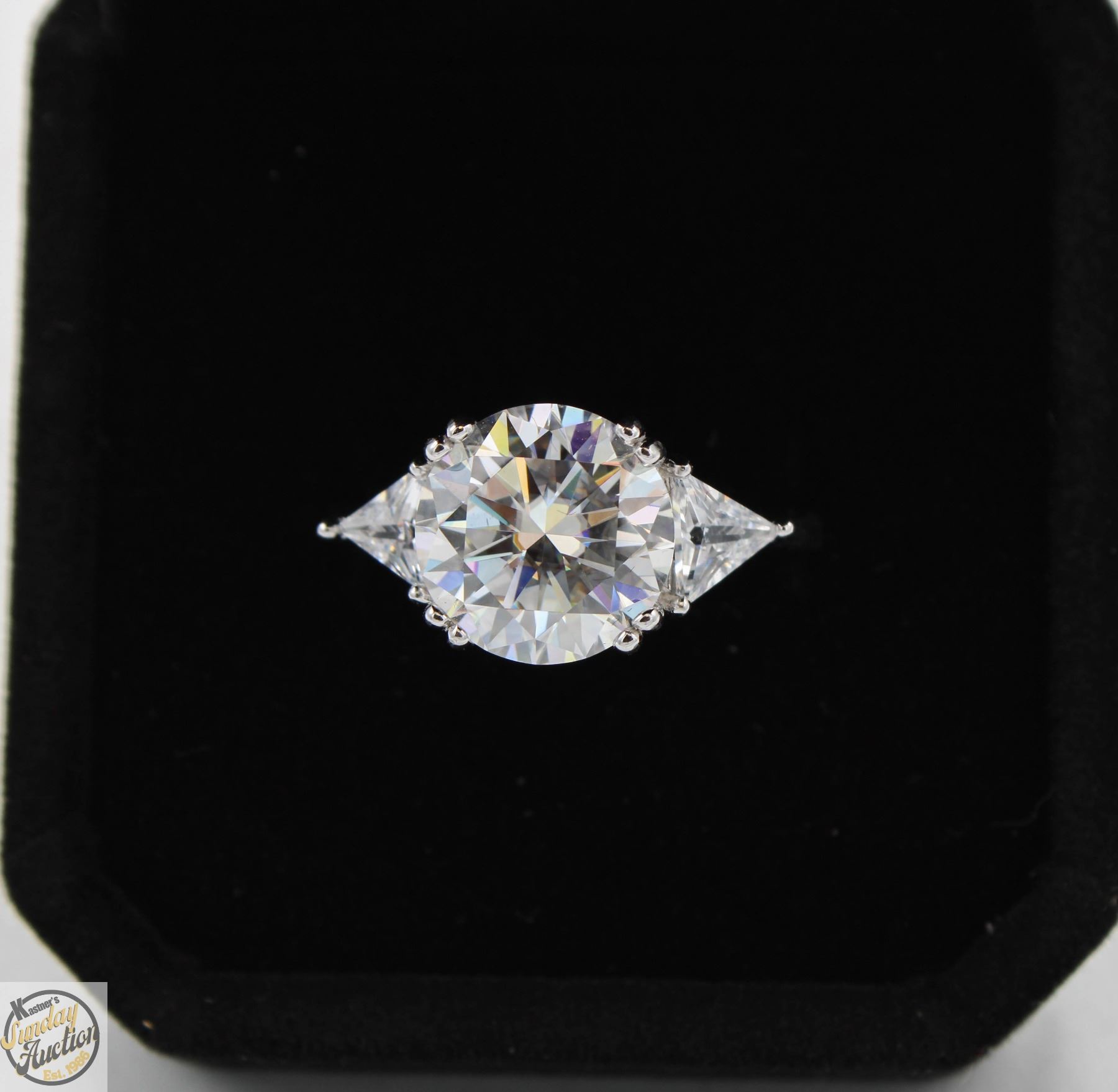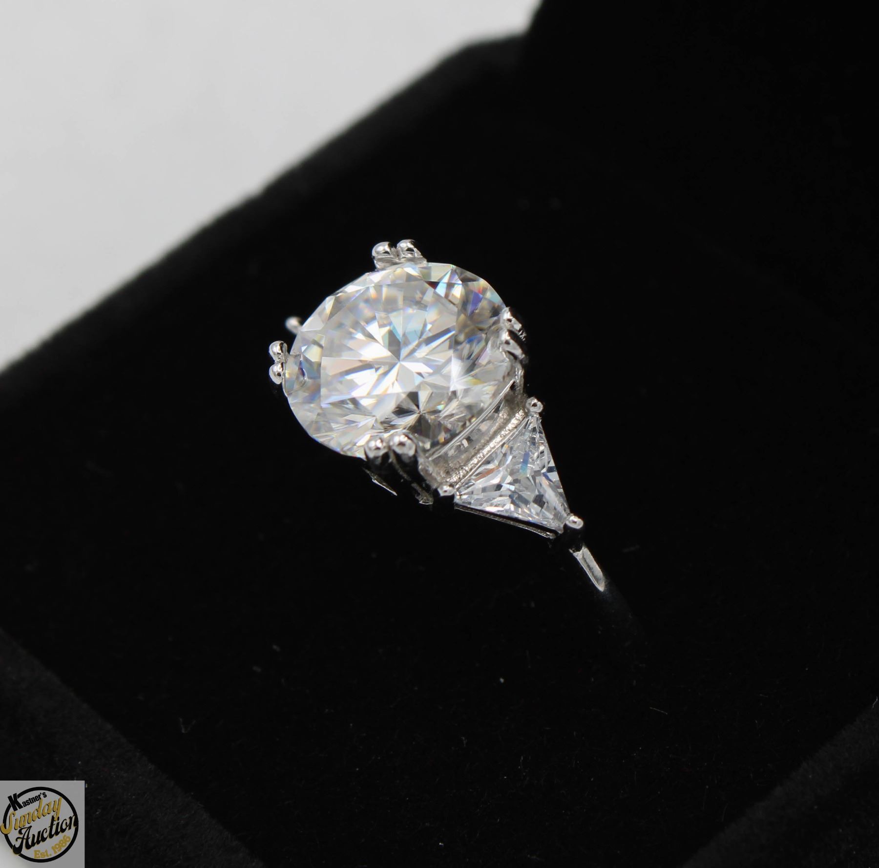 CUT MOISSANITE STONE VVS D COLOR WITH 2 TRIANGULAR BRILLIANT CUT CUBIC ZIRCONIA SET IN 925 SILVER RING SIZE 9 RETAIL VALUE $1,425.00 **ALL ITEMS MUST BE REMOVED BY 5PM SATURDAY, MAY 10TH 2025. ALL REMAINING ITEMS WILL BE SUBJECT TO A $6.00 PER DAY STORAGE CHARGE. ANY ITEMS REMAINING AFTER MONDAY, MAY 26TH 2025 WILL BE CONSIDERED FORFEITED. NO REFUNDS WILL BE ISSUED FOR FORFEITED ITEMS. TO SCHEDULE A PICK UP APPOINTMENT CLICK HERE