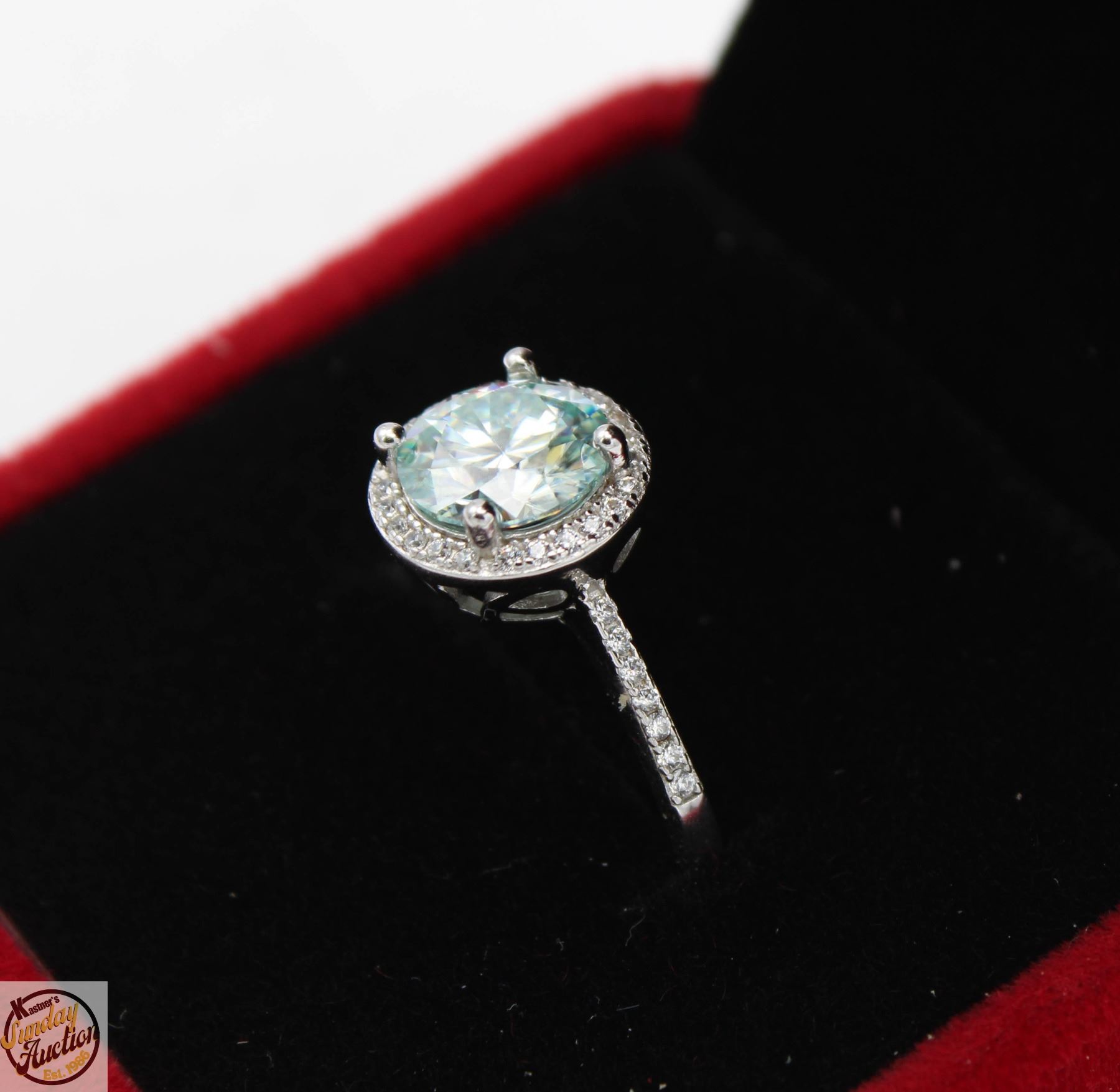 CUT MOISSANITE STONE VVS BLUE COLOR WITH 35 ROUND BRILLIANT CUT CUBIC ZIRCONIA SET AROUND CENTER INCLUDING MORE SET IN THE SHANK SET IN 925 SILVER RING SIZE ADJUSTABLE RETAIL VALUE $1,150.00 **ALL ITEMS MUST BE REMOVED BY 5PM SATURDAY, MAY 10TH 2025. ALL REMAINING ITEMS WILL BE SUBJECT TO A $6.00 PER DAY STORAGE CHARGE. ANY ITEMS REMAINING AFTER MONDAY, MAY 26TH 2025 WILL BE CONSIDERED FORFEITED. NO REFUNDS WILL BE ISSUED FOR FORFEITED ITEMS. TO SCHEDULE A PICK UP APPOINTMENT CLICK HERE