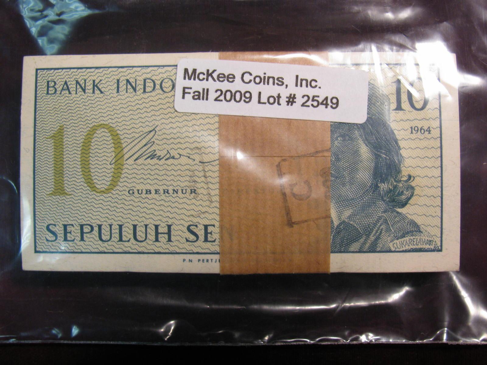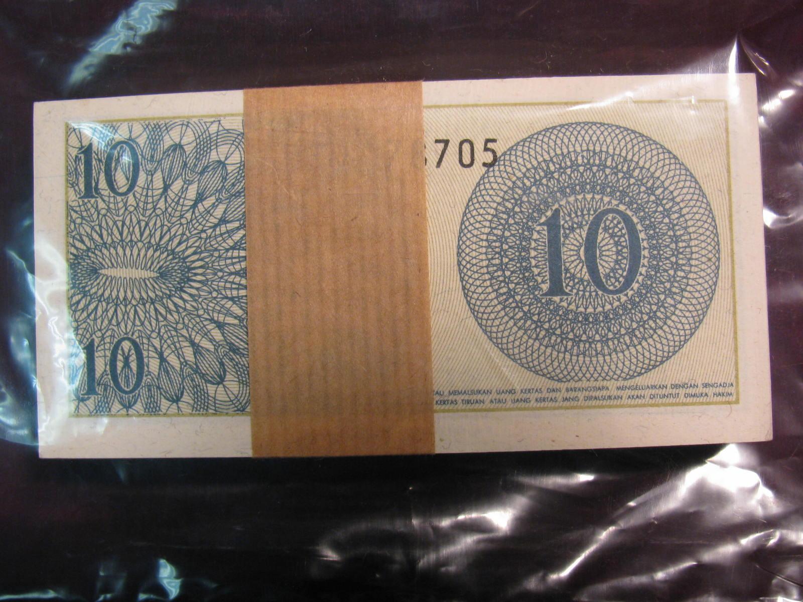 2549. 1964 Original Bundle (100) Bank Indonesia Sepuluh (10) Sen Notes. UNC