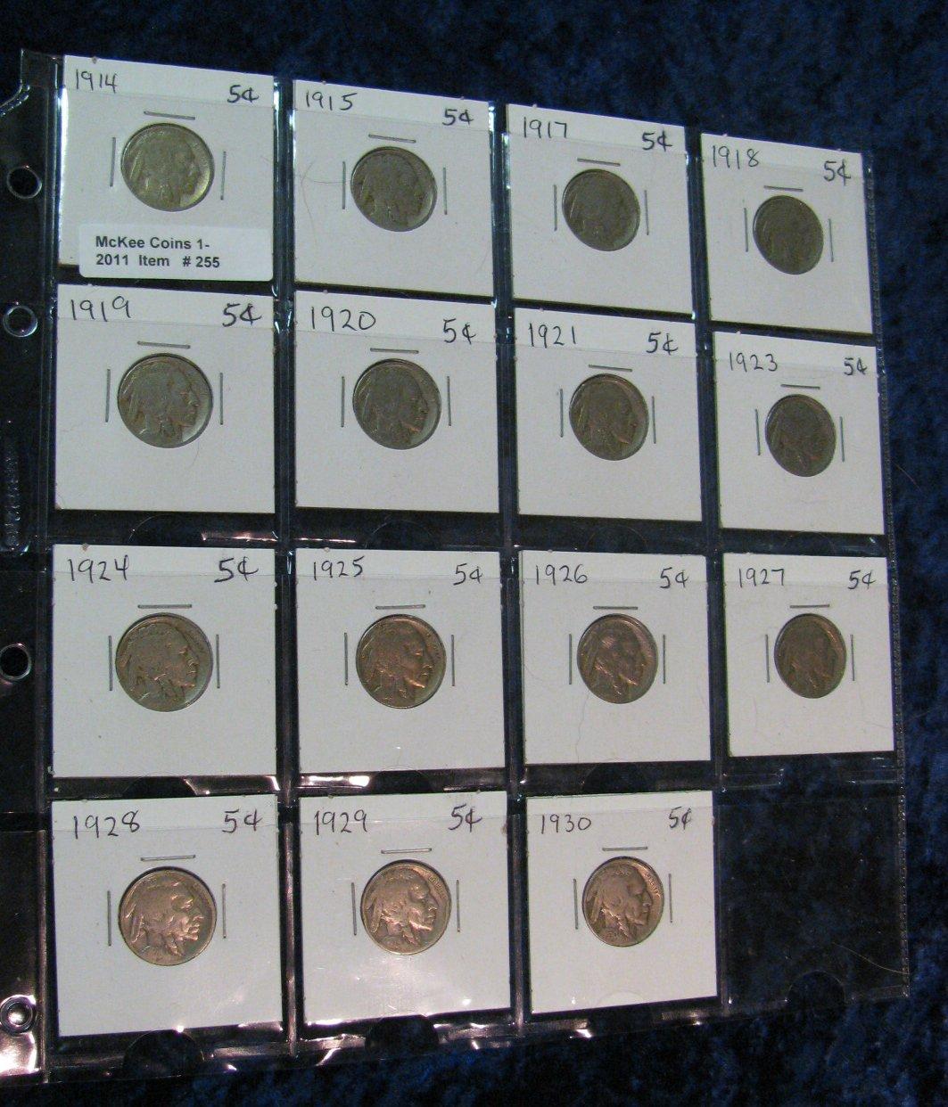 255. Lot 15 Different P Mint circulated Buffalo Nickels 1914-1930 in 2 x 2s.