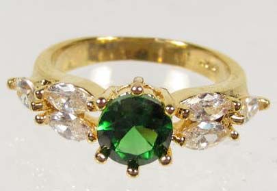 2554 - 14K GOLD PLATED EMERALD & WHITE TOPAZ RING