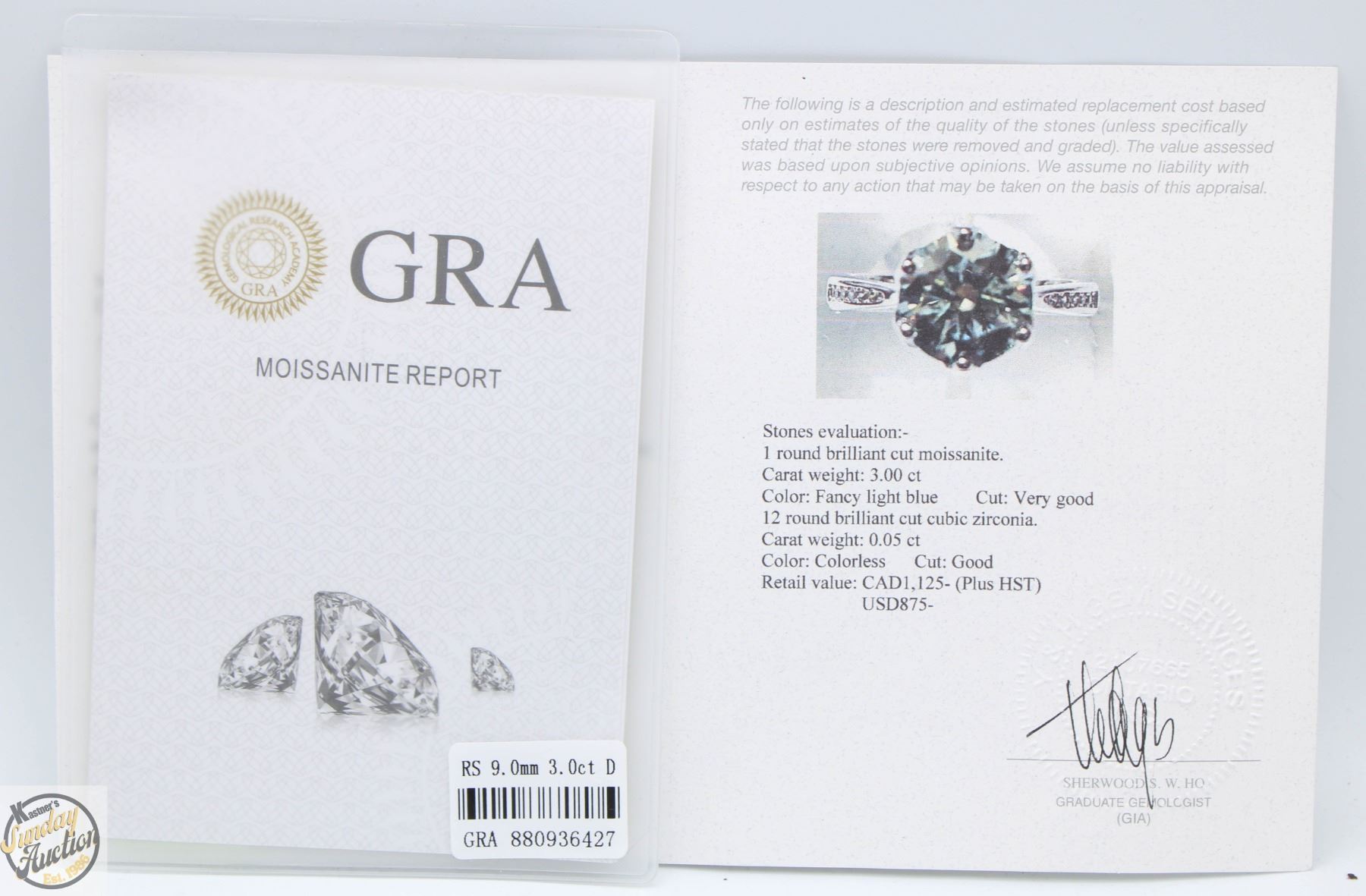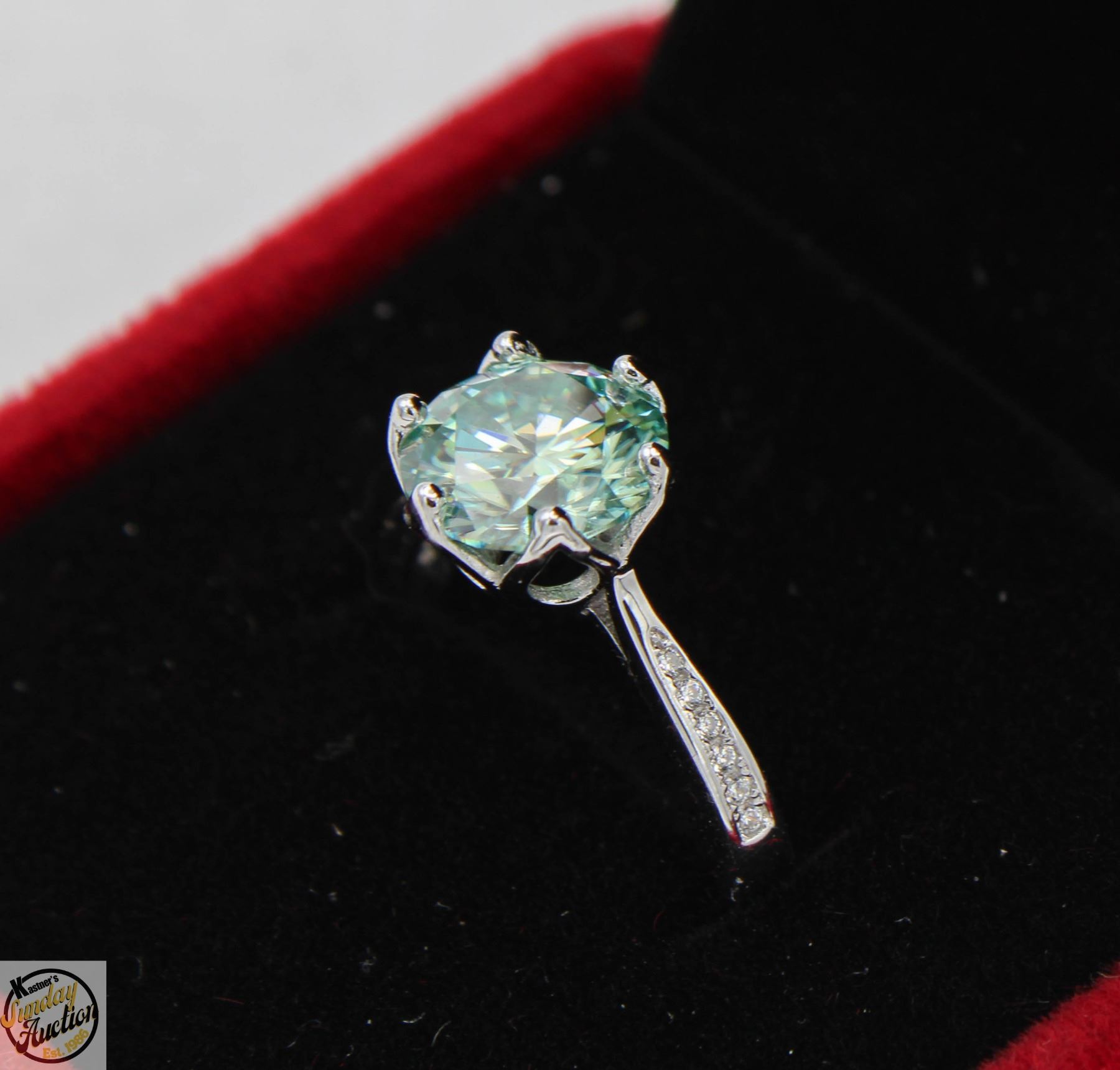 MOISSANITE STONE VVS FANCY LIGHT BLUE COLOR WITH 12 ROUND BRILLIANT CUT CUBIC ZIRCONIA SET IN SHANKS SET IN 925 SILVER RING SIZE 7 RETAIL VALUE $1,125.00 **ALL ITEMS MUST BE REMOVED BY 5PM SATURDAY, MAY 17TH 2025. ALL REMAINING ITEMS WILL BE SUBJECT TO A $6.00 PER DAY STORAGE CHARGE. ANY ITEMS REMAINING AFTER MONDAY, JUNE 2ND 2025 WILL BE CONSIDERED FORFEITED. NO REFUNDS WILL BE ISSUED FOR FORFEITED ITEMS. TO SCHEDULE A PICK UP APPOINTMENT CLICK HERE