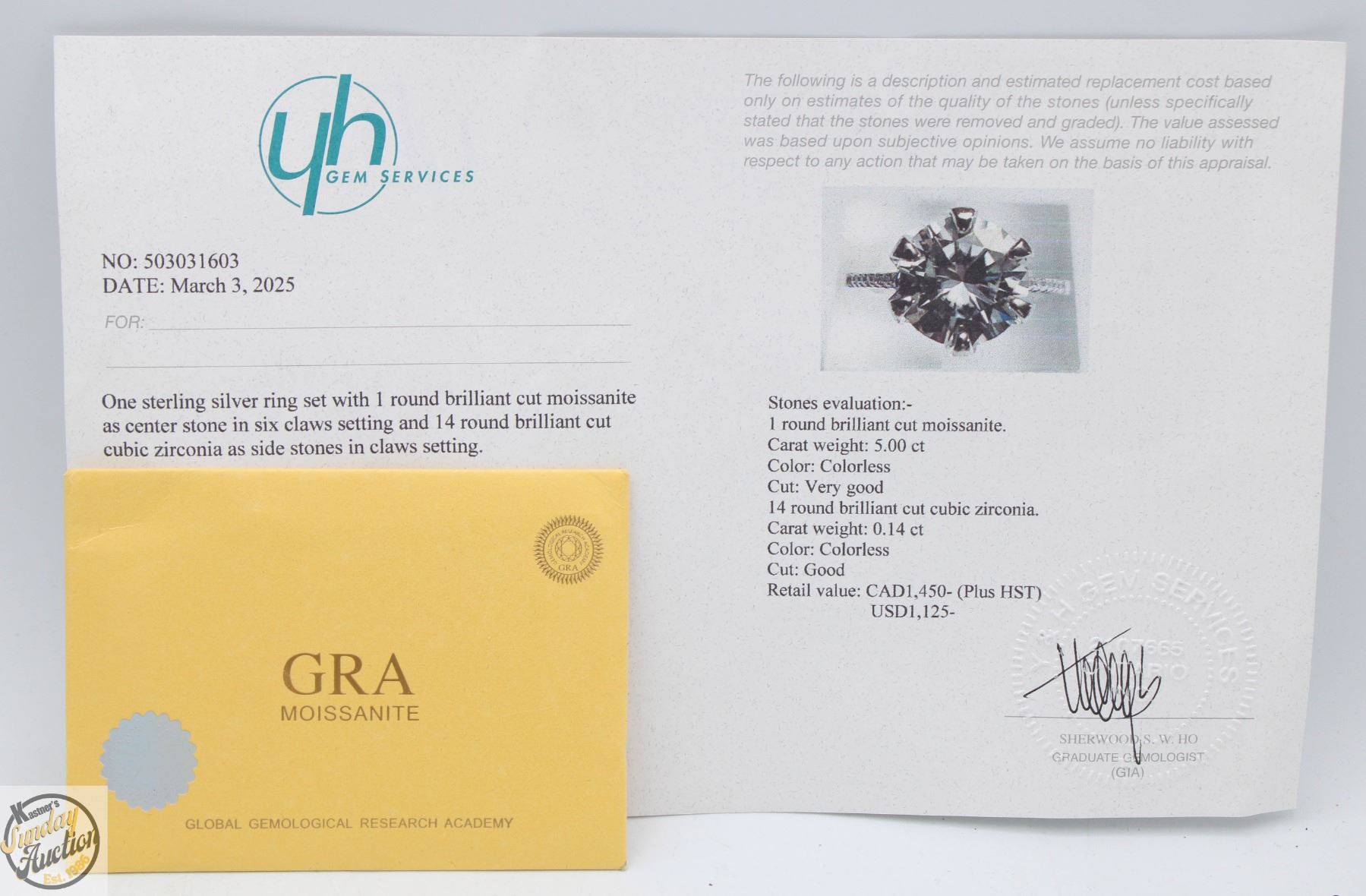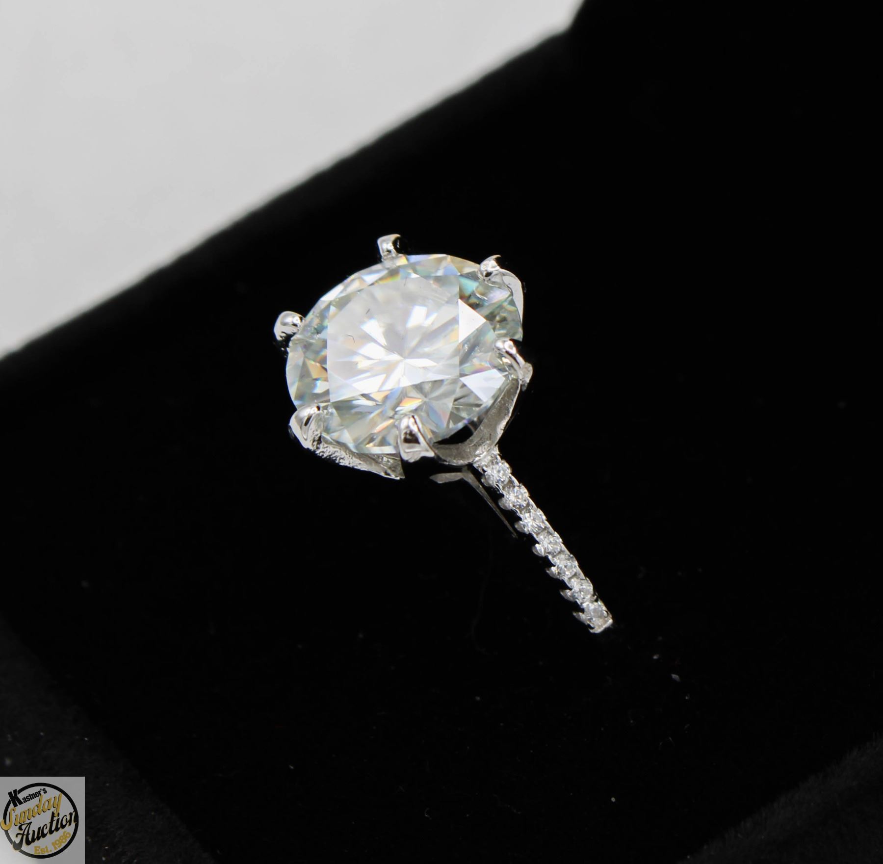 MOISSANITE STONE VVS D COLOR SET IN CENTER WITH 14 ROUND BRILLIANT CUT CUBIC ZIRCONIA AND SET IN 925 SILVER RING SIZE 7 RETAIL VALUE $1,450.00 **ALL ITEMS MUST BE REMOVED BY 5PM SATURDAY, MAY 17TH 2025. ALL REMAINING ITEMS WILL BE SUBJECT TO A $6.00 PER DAY STORAGE CHARGE. ANY ITEMS REMAINING AFTER MONDAY, JUNE 2ND 2025 WILL BE CONSIDERED FORFEITED. NO REFUNDS WILL BE ISSUED FOR FORFEITED ITEMS. TO SCHEDULE A PICK UP APPOINTMENT CLICK HERE