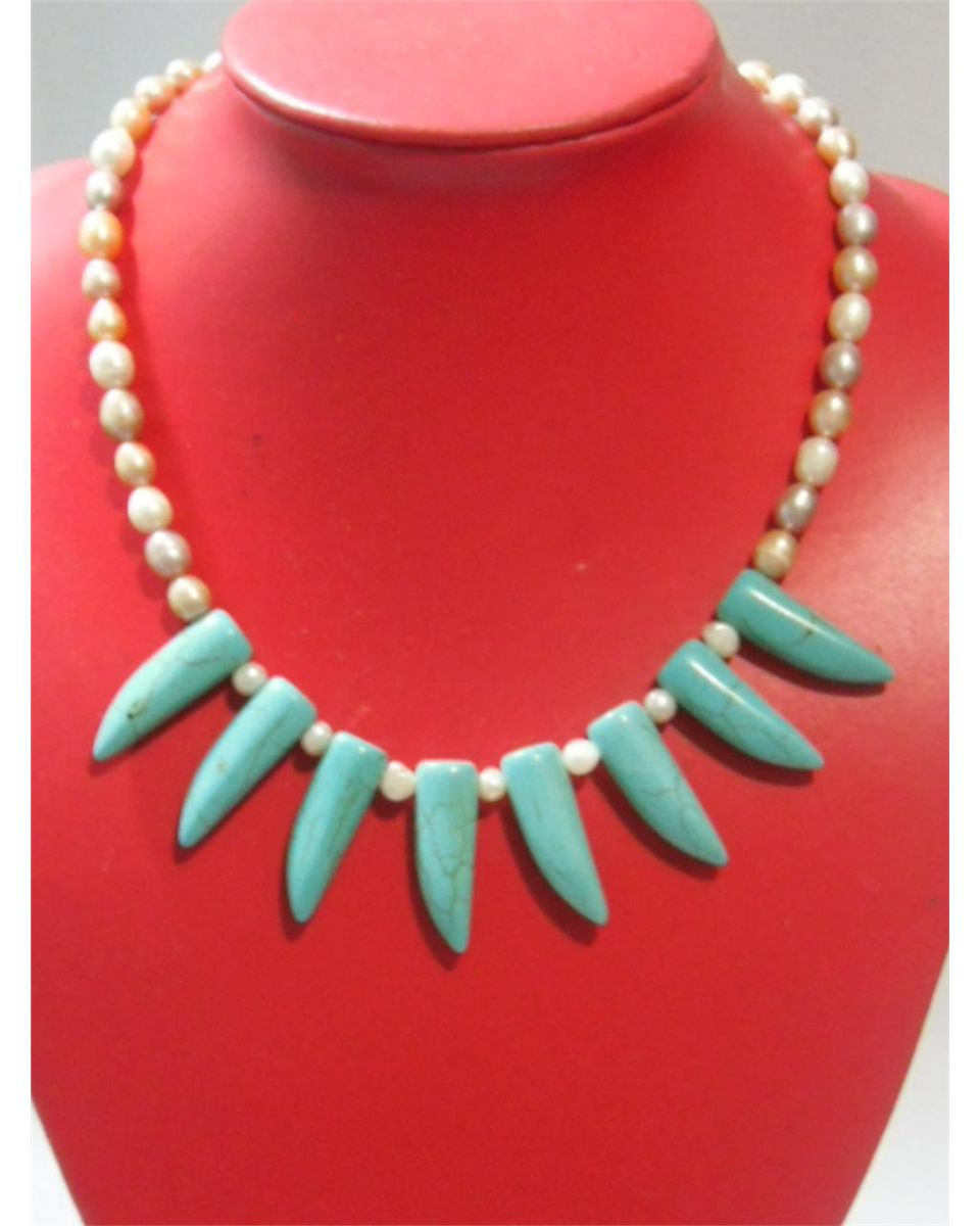 255CTW NATURAL BLUE TURQUOISE TRIBAL AND PHILIPPINE TRI **|**|** 255CTW NATURAL BLUE TURQUOISE TRIBAL AND PHILIPPINE TRICOLOR PEARL NECKLACE 18INCH ; MSRP: $0