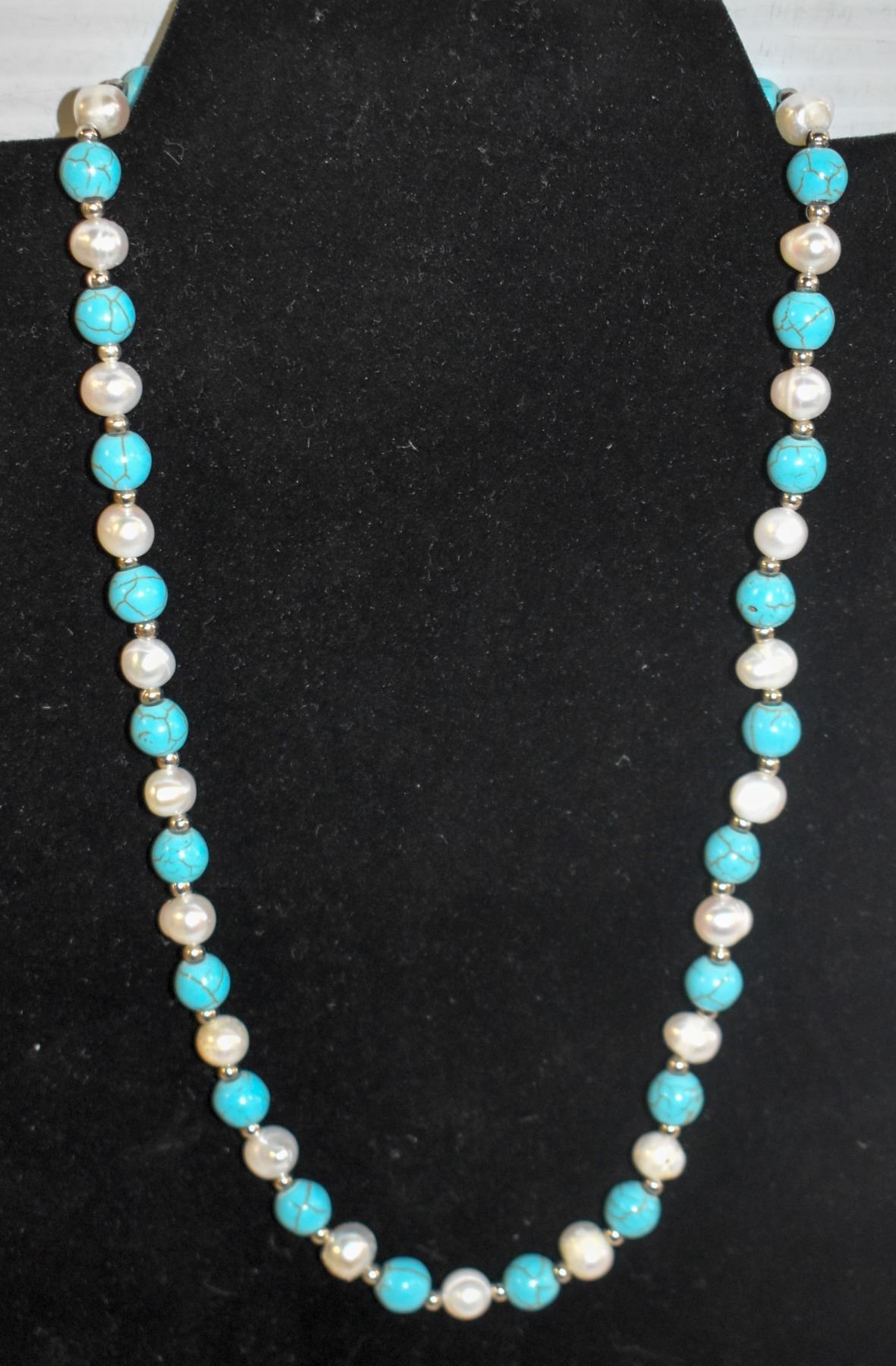 #256-FRESH WATER PEARL & BLUE TOURQOISE NECKLACE