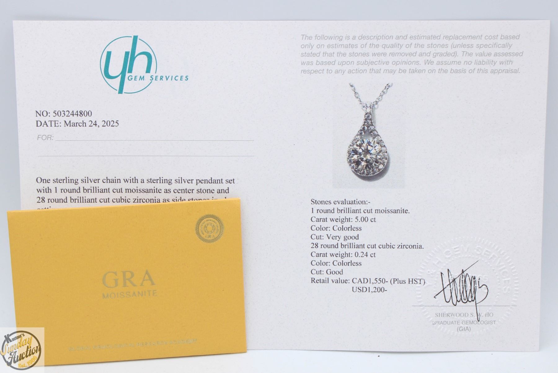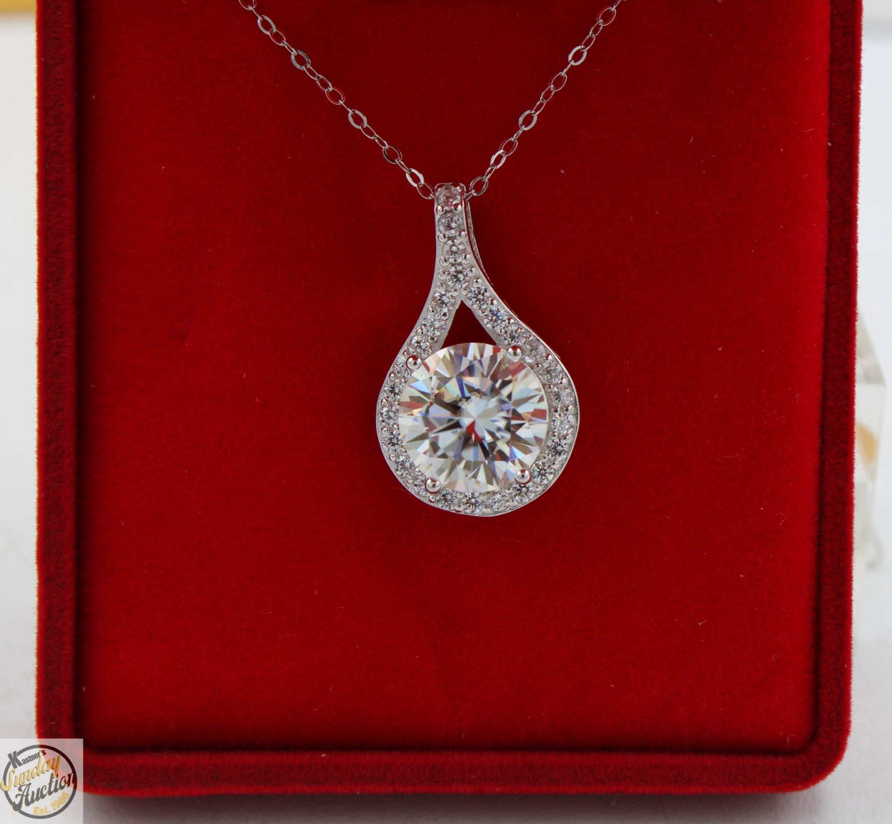 CUT MOISSANITE STONE VVS D COLOR WITH 28 ROUND BRILLIANT CUT CUBIC ZIRCONIA SET IN TEAR DROP HALO SET IN 925 SILVER PENDANT RETAIL VALUE $1,550.00 **ALL ITEMS MUST BE REMOVED BY 5PM SATURDAY, MAY 10TH 2025. ALL REMAINING ITEMS WILL BE SUBJECT TO A $6.00 PER DAY STORAGE CHARGE. ANY ITEMS REMAINING AFTER MONDAY, MAY 26TH 2025 WILL BE CONSIDERED FORFEITED. NO REFUNDS WILL BE ISSUED FOR FORFEITED ITEMS. TO SCHEDULE A PICK UP APPOINTMENT CLICK HERE