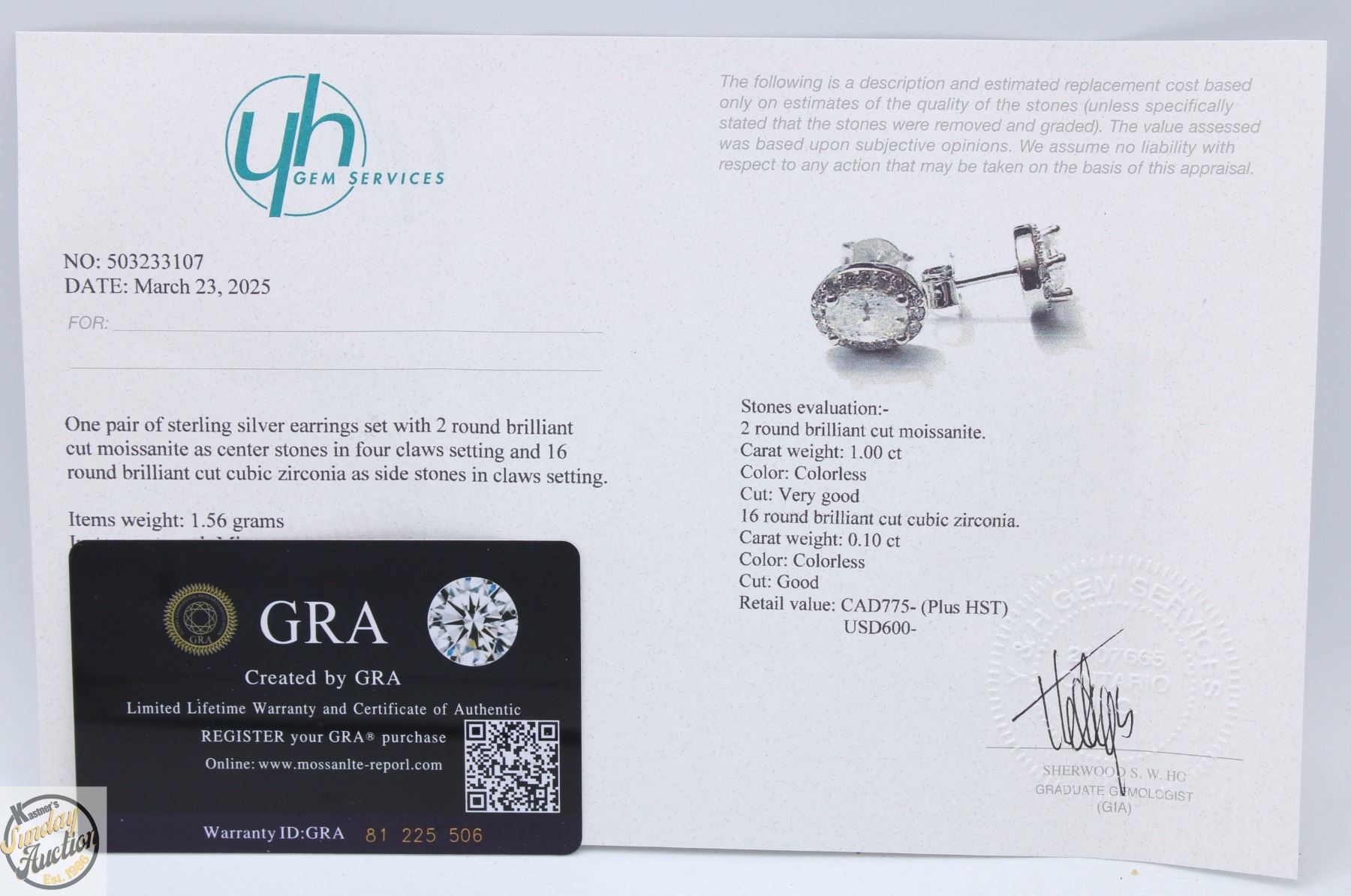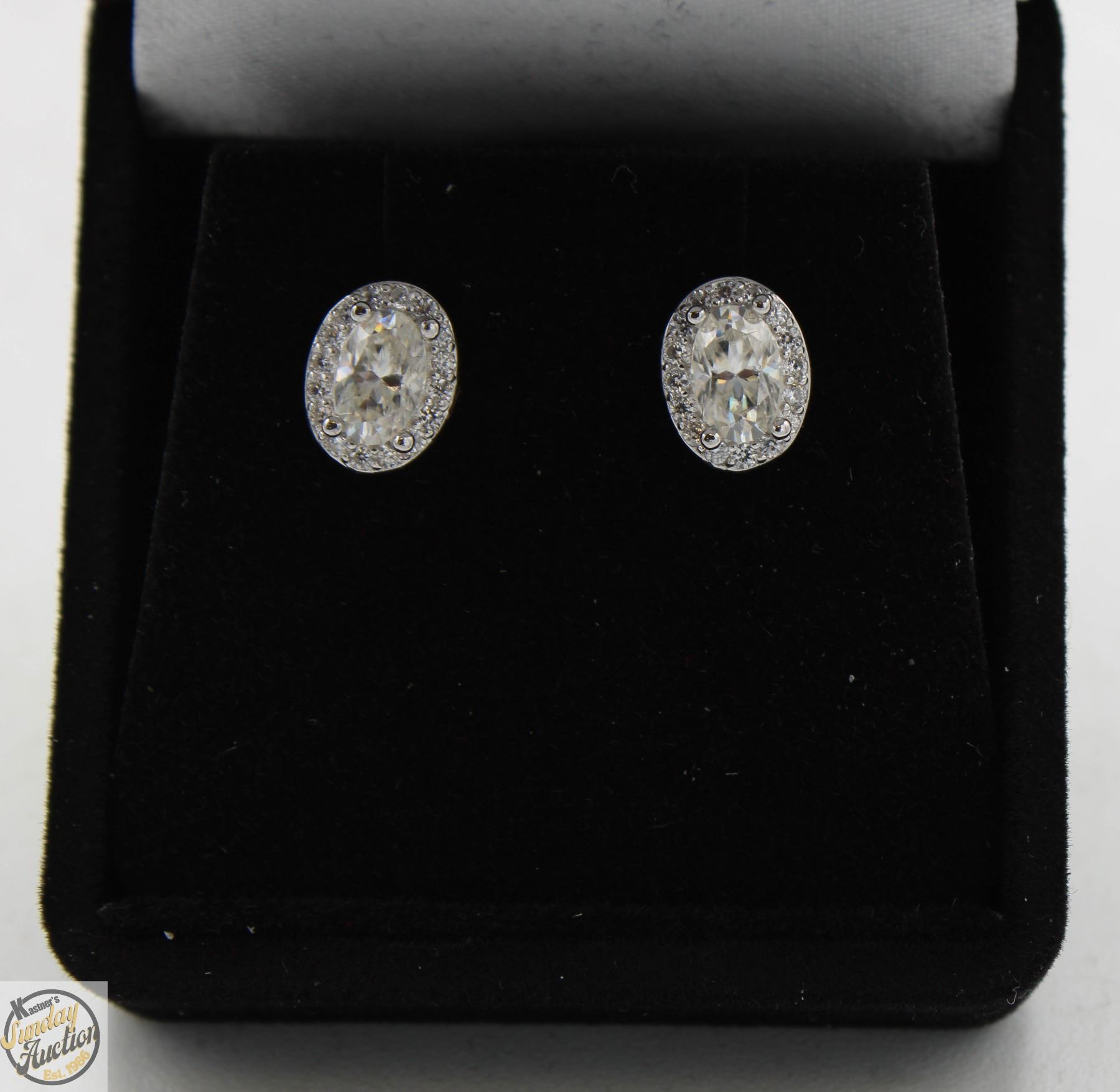 MOISSANITE STONES VVS D COLOR WITH 16 ROUND BRILLIANT CUT CUBIC ZIRCONIA SET IN HALOS SET IN 925 SILVER EARRINGS RETAIL VALUE $775.00 **ALL ITEMS MUST BE REMOVED BY 5PM SATURDAY, MAY 10TH 2025. ALL REMAINING ITEMS WILL BE SUBJECT TO A $6.00 PER DAY STORAGE CHARGE. ANY ITEMS REMAINING AFTER MONDAY, MAY 26TH 2025 WILL BE CONSIDERED FORFEITED. NO REFUNDS WILL BE ISSUED FOR FORFEITED ITEMS. TO SCHEDULE A PICK UP APPOINTMENT CLICK HERE
