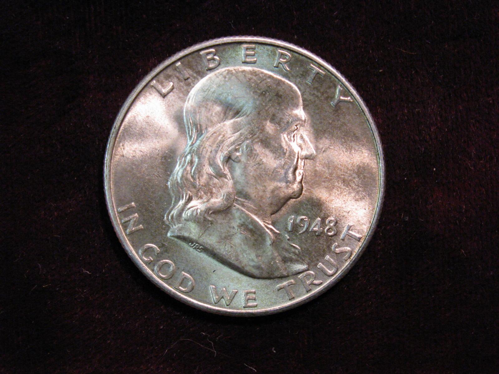 2569. 1948 D Franklin Type Silver Half Dollar. Toned BU.
