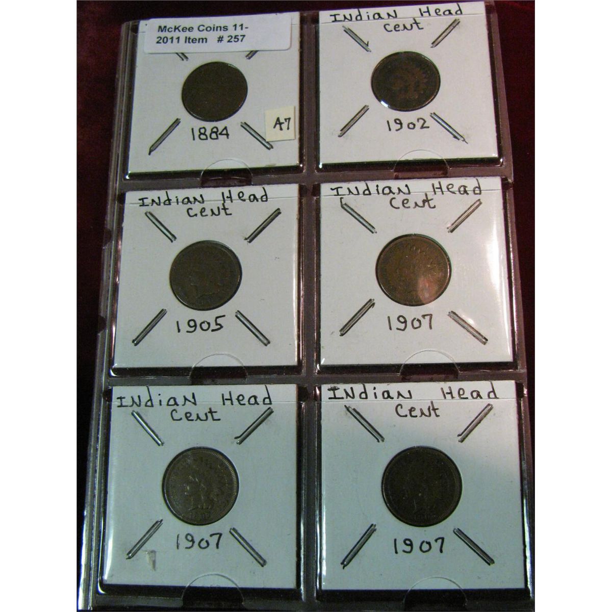 257. 1884, 1902, 05, (3) 07 Indian Cents. G-VF.