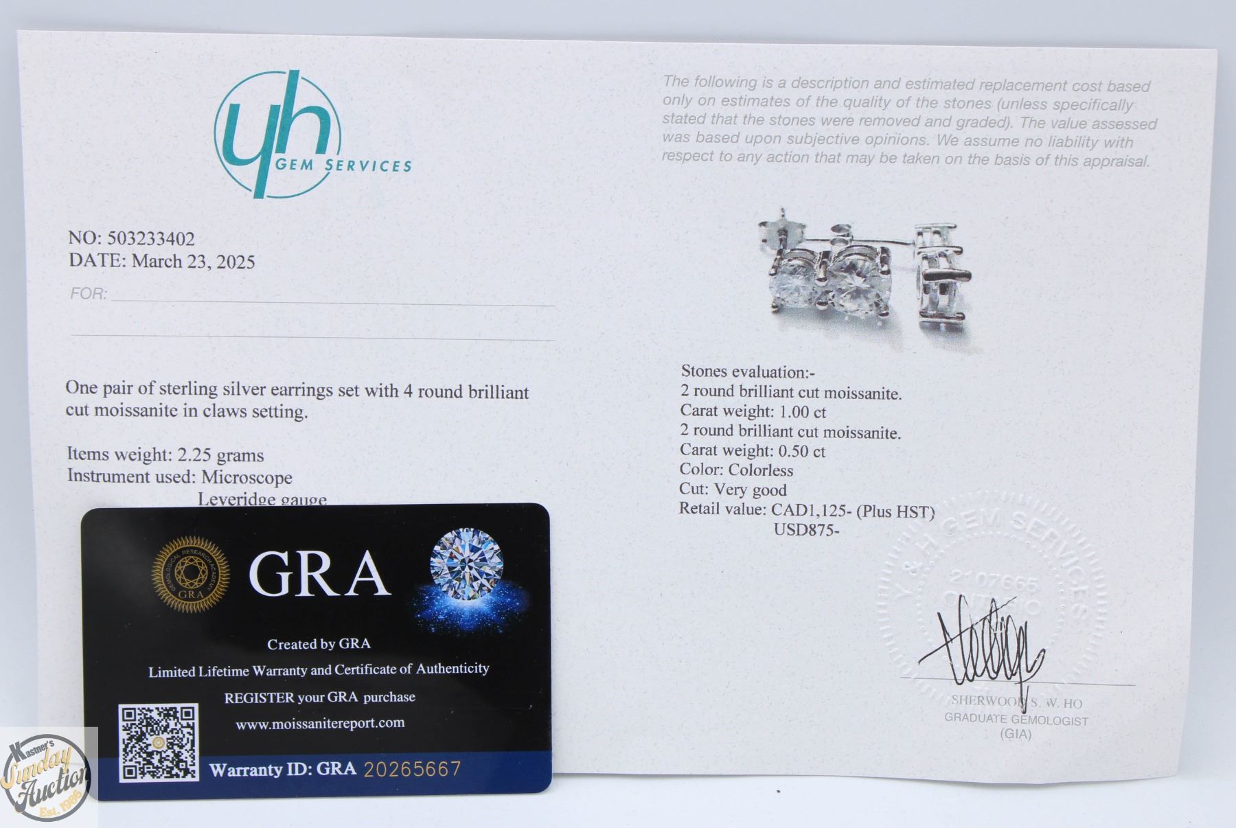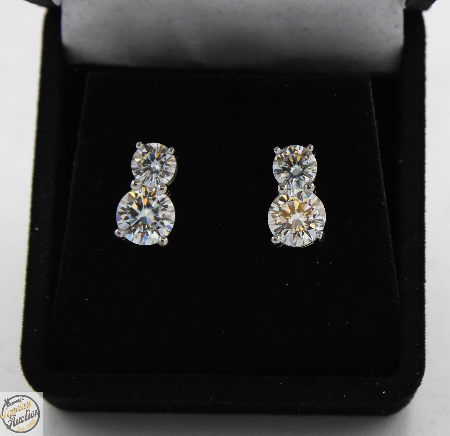 BRILLIANT CUT MOISSANITE STONES VVS D COLOR WITH 0.50 CT ON TOP OF 1.00 CT MOISSANITE IN EACH EARRING SET IN 925 SILVER EARRINGS RETAIL VALUE $1,125.00 **ALL ITEMS MUST BE REMOVED BY 5PM SATURDAY, MAY 10TH 2025. ALL REMAINING ITEMS WILL BE SUBJECT TO A $6.00 PER DAY STORAGE CHARGE. ANY ITEMS REMAINING AFTER MONDAY, MAY 26TH 2025 WILL BE CONSIDERED FORFEITED. NO REFUNDS WILL BE ISSUED FOR FORFEITED ITEMS. TO SCHEDULE A PICK UP APPOINTMENT CLICK HERE