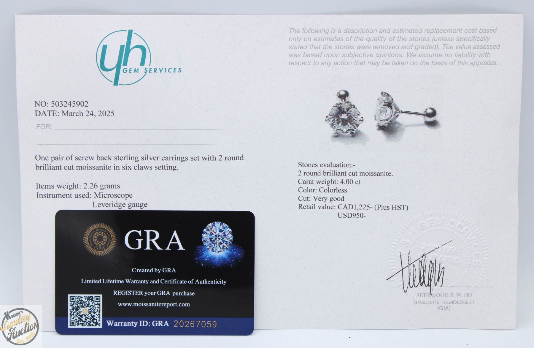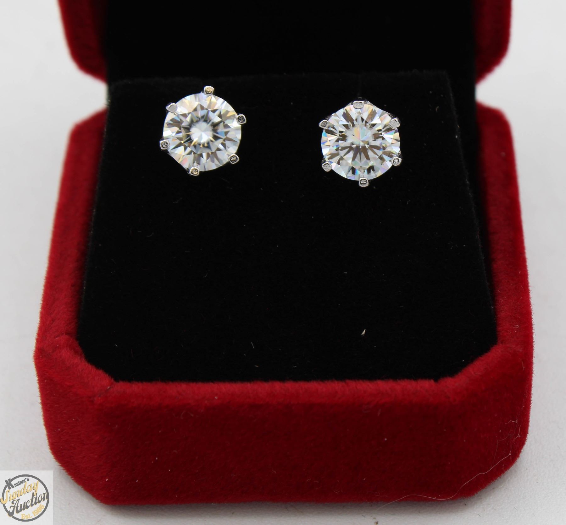 CUT MOISSANITE STONES VVS D COLOR SET IN 4 CLAW FILAGREE HEAD SET IN 925 SILVER EARRINGS WITH SCREW BACKS RETAIL VALUE $1,225.00 **ALL ITEMS MUST BE REMOVED BY 5PM SATURDAY, MAY 10TH 2025. ALL REMAINING ITEMS WILL BE SUBJECT TO A $6.00 PER DAY STORAGE CHARGE. ANY ITEMS REMAINING AFTER MONDAY, MAY 26TH 2025 WILL BE CONSIDERED FORFEITED. NO REFUNDS WILL BE ISSUED FOR FORFEITED ITEMS. TO SCHEDULE A PICK UP APPOINTMENT CLICK HERE