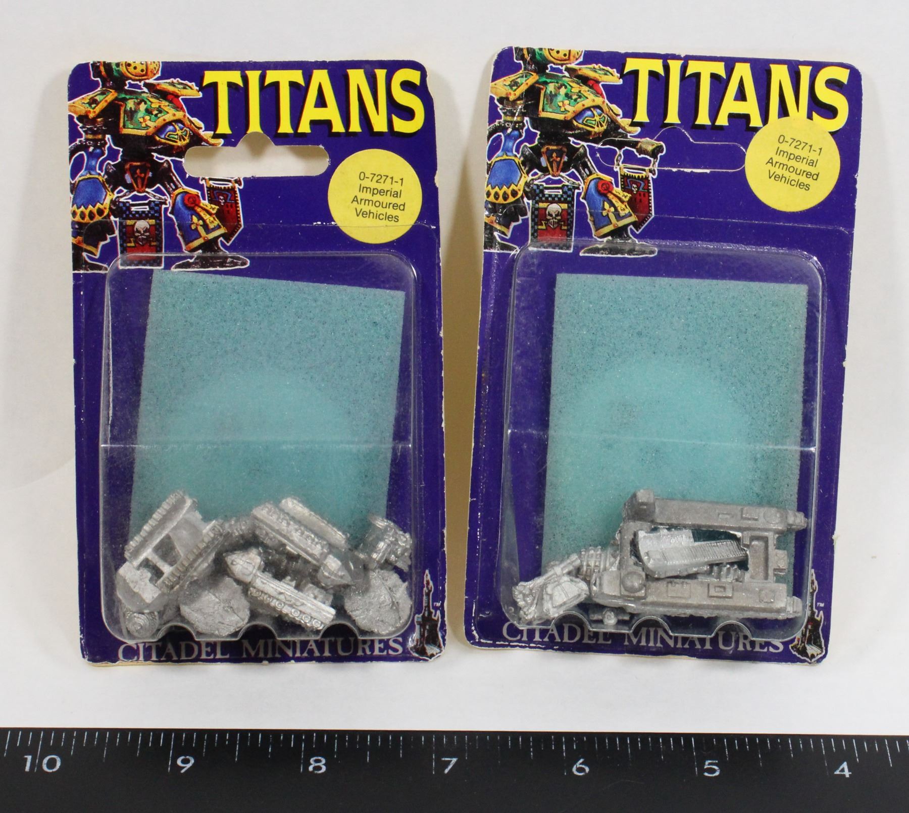 0-727101 IMPERIAL ARMOURED VEHICLES SET OF 2 SEALED IN PACKAGE 1988 MADE IN ENGLAND WARHAMMER 40K 40,000 40000 CITADEL MINIATURES GAMES WORKSHOP RPG GAME SEALED METAL MODELS