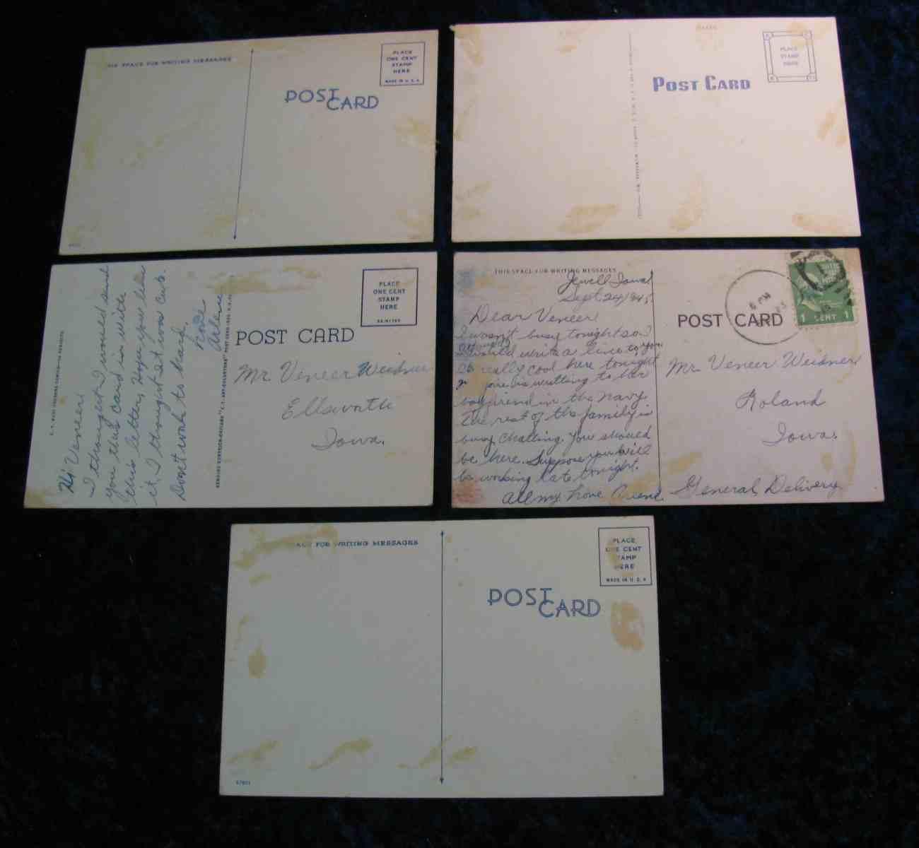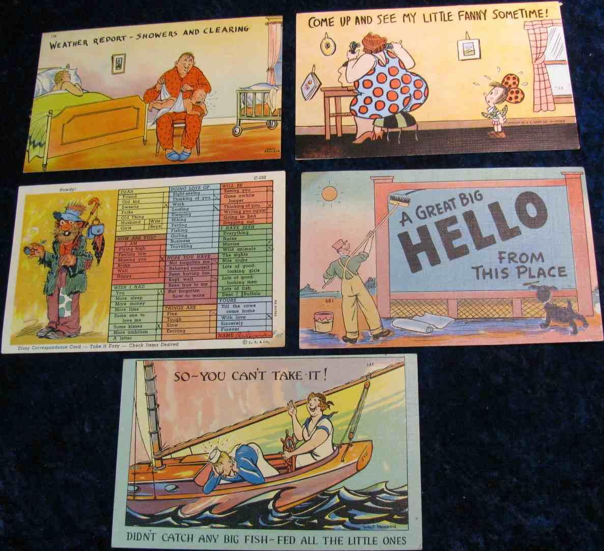 259. (5) Old WW II era Humorous Post Cards.