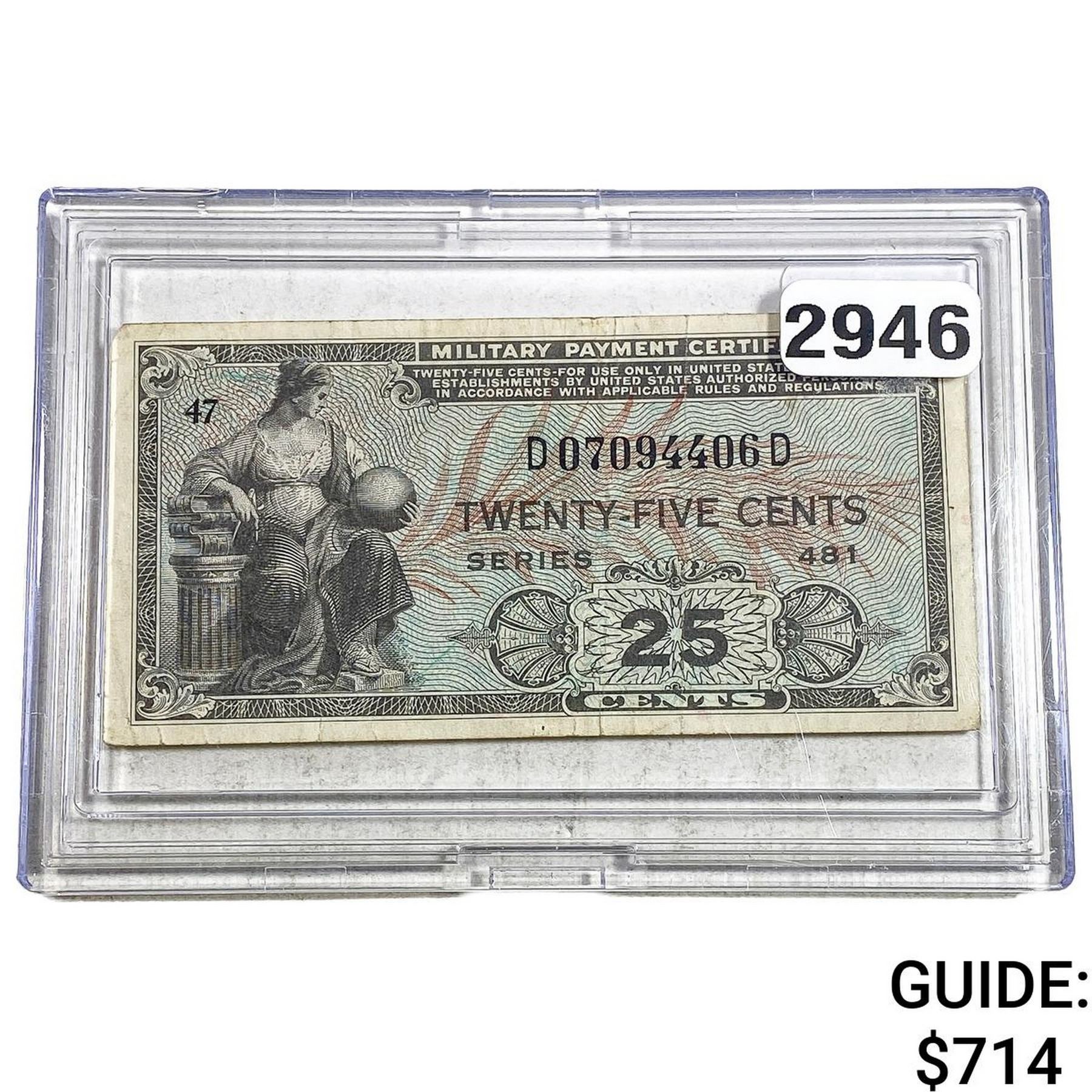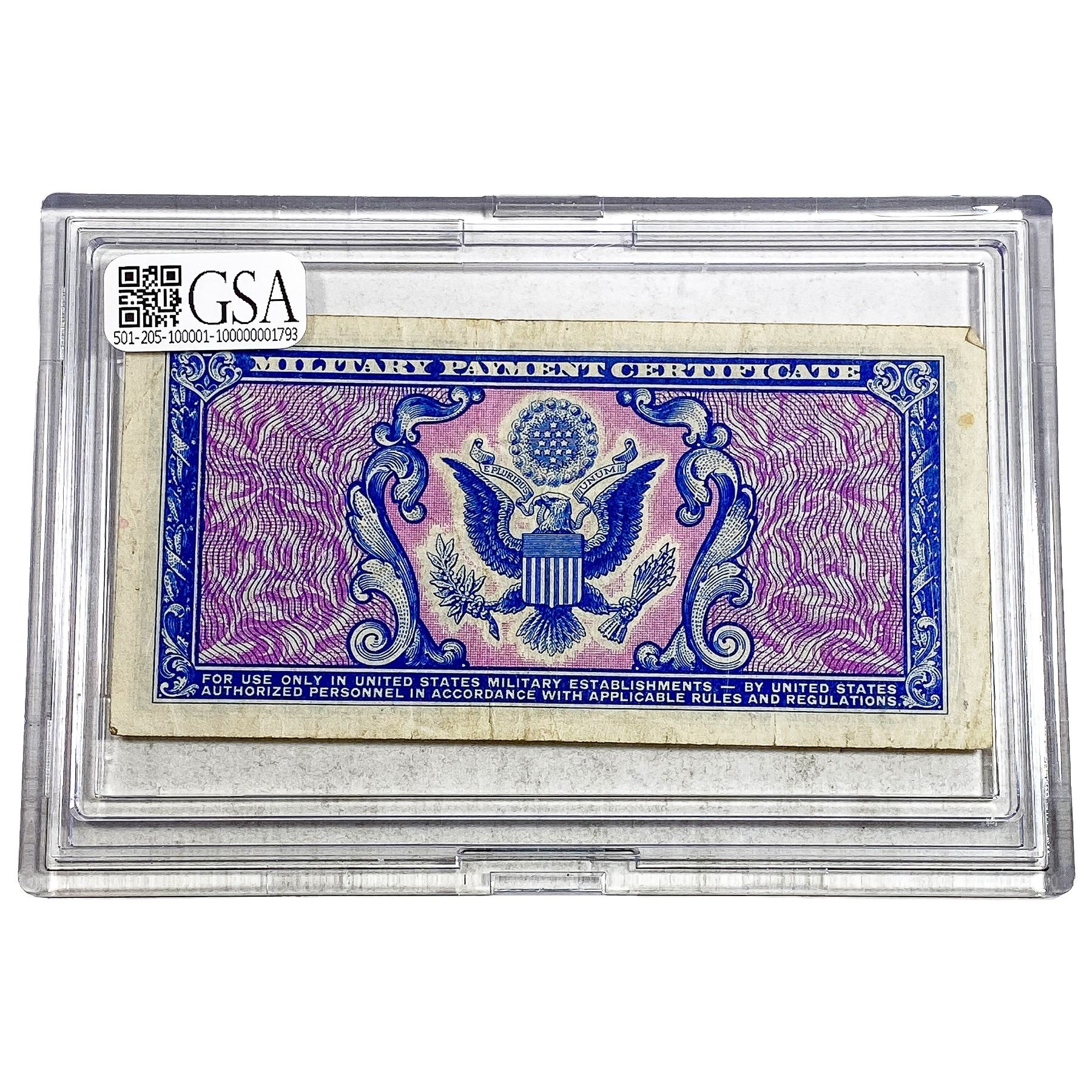 f. Notes sold referencing a third-party grading service are sold “AS IS” without any express or implied warranty, except for guarantee by GSA that they are genuine. Grading, condition or other attributes of any Product may have a material effect on its value and the opinion of others, including third-party grading services such as PCGS Currency and PMG may differ with that of GSA. GSA shall not be bound by any prior or subsequent opinion, determination, or certification by any grading service. Bidders specifically waive any claim to right of return of any Product because of the opinion, determination, or certification, or lack thereof, by any grading service. Certain warranties may be available from the grading services and Bidders are referred to them for further details: Paper Money Guaranty (PMG), PO Box 4711, Sarasota, FL 34230; PCGS Currency, PO Box 10470, Peoria, IL 61612-0470; PCGS Gold Shield, PO Box 9458, Newport Beach, CA 92658. Third-party graded notes are not returnable for any reason whatsoever.