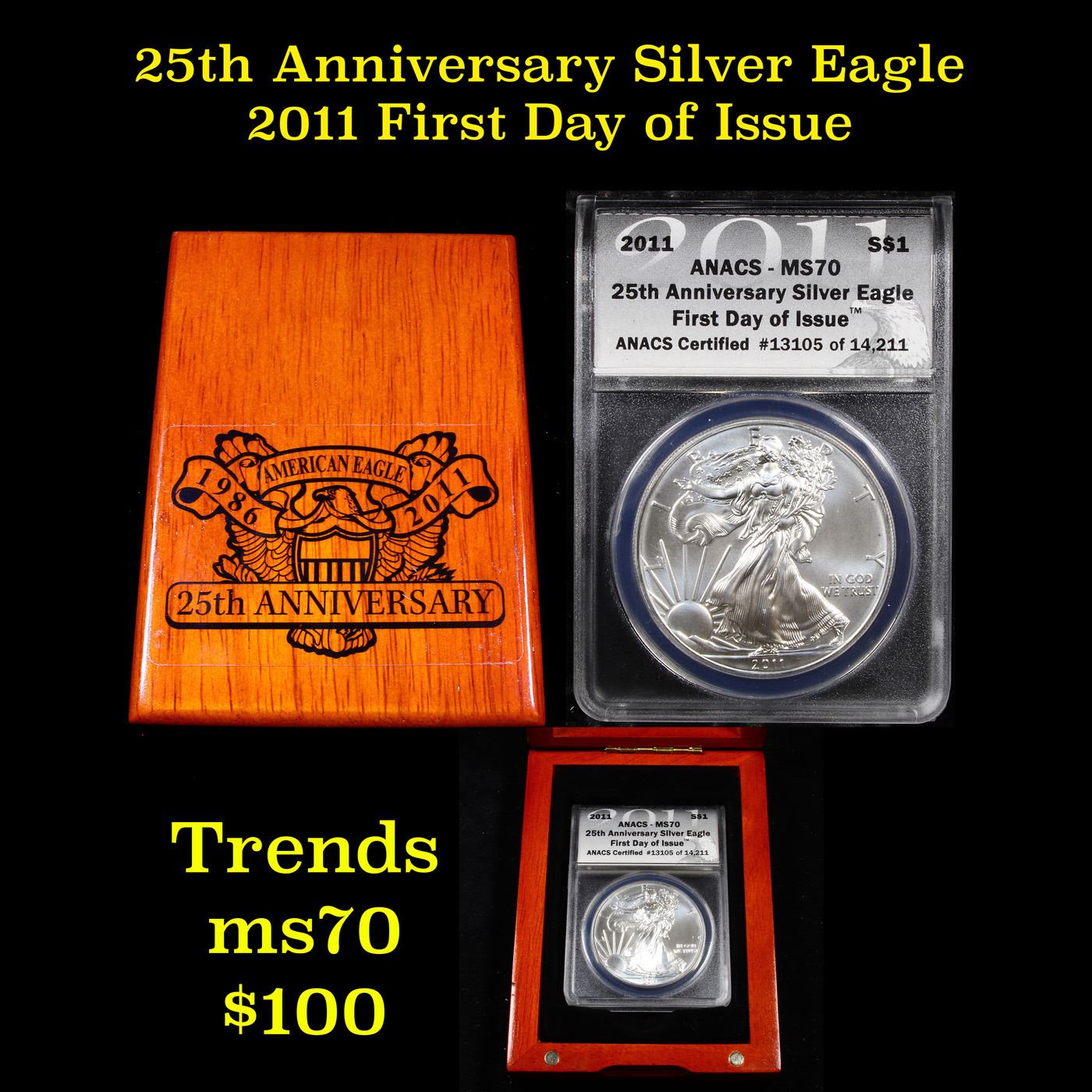25TH Anniversary NGC 2011-w SILVER Eagle Graded MS70 ANACS Silver Eagle Dollar $1.